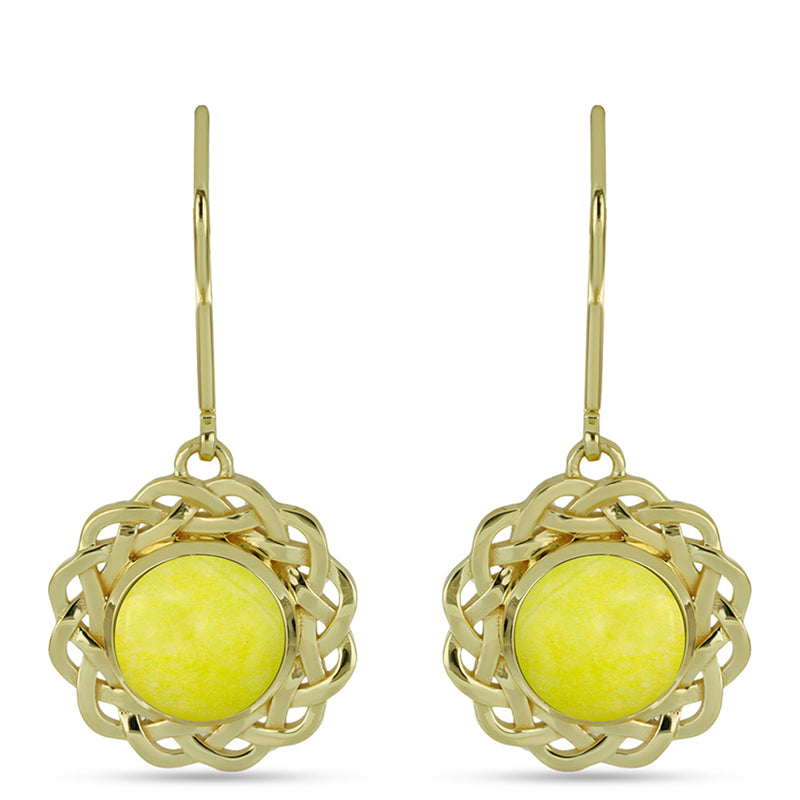 Arannyal Bevont Ezüst Fülbevaló Sárga Szerpentinnel
