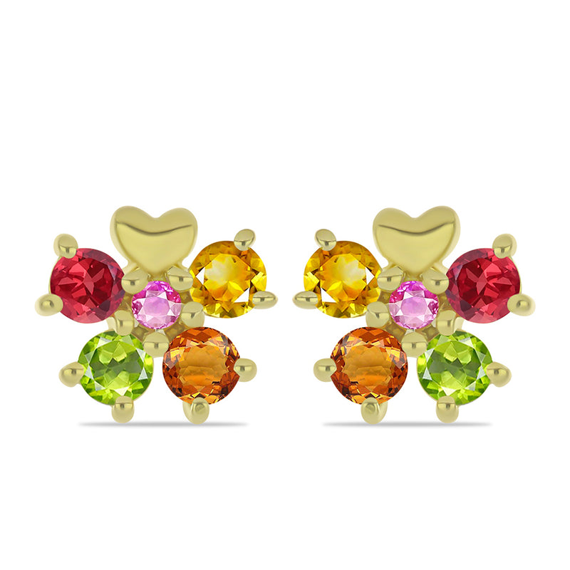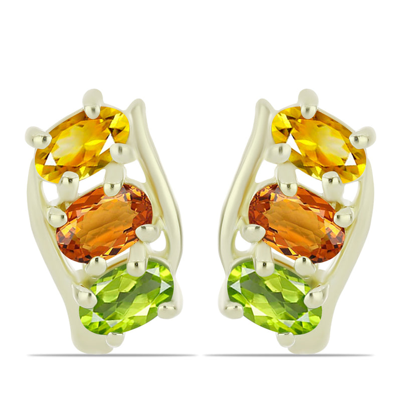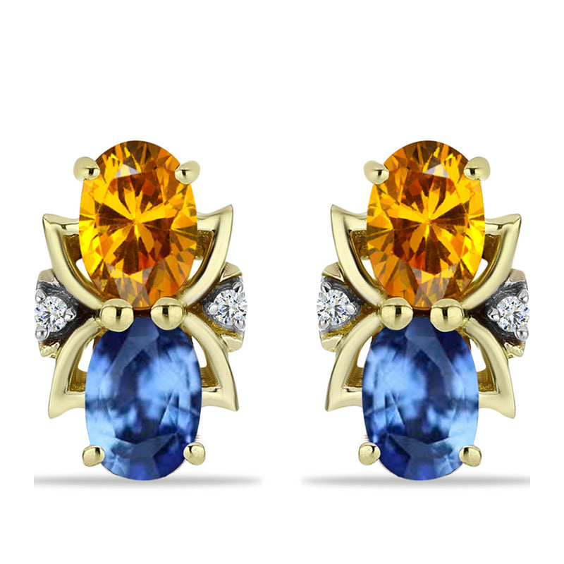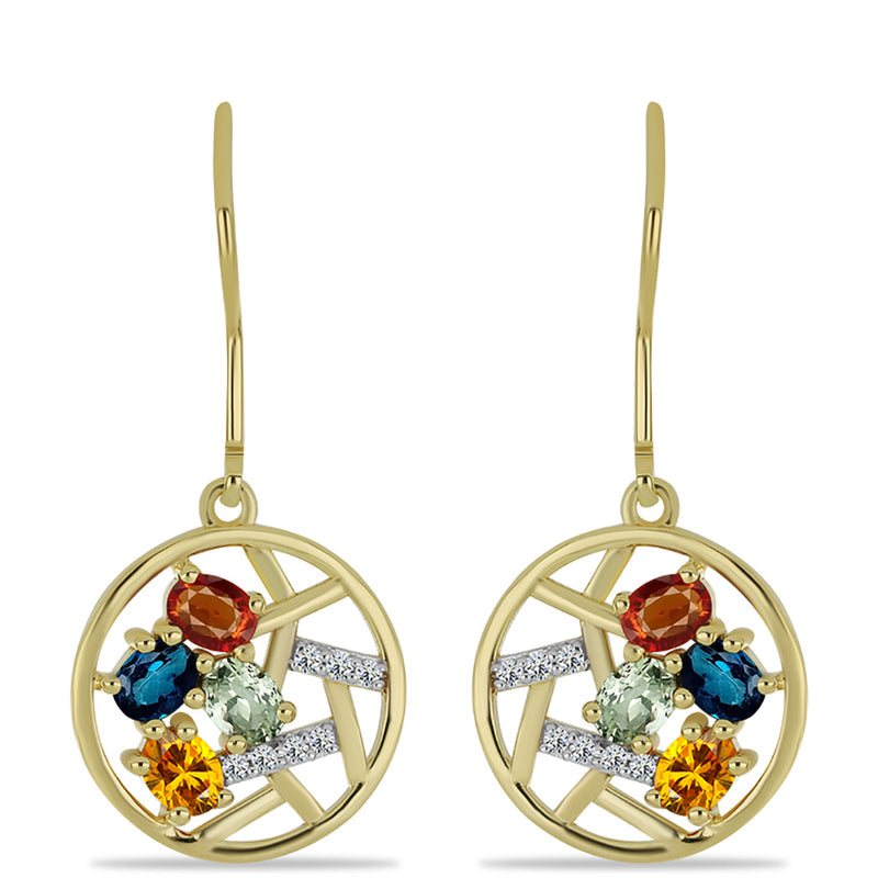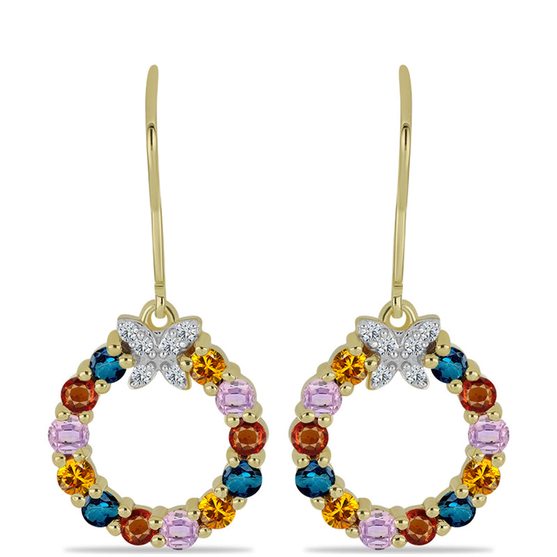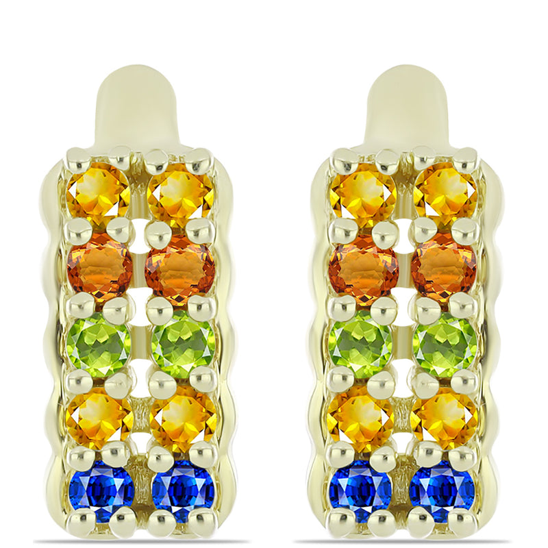 Arannyal Bevont Ezüst Fülbevaló Rosebery Szivárvány Zafírral és Fehér Topázzal