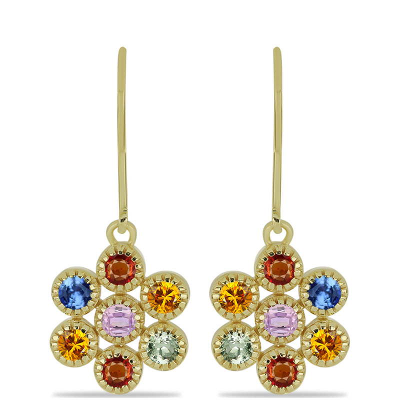Arannyal Bevont Ezüst Fülbevaló Rosebery Szivárvány Zafírral