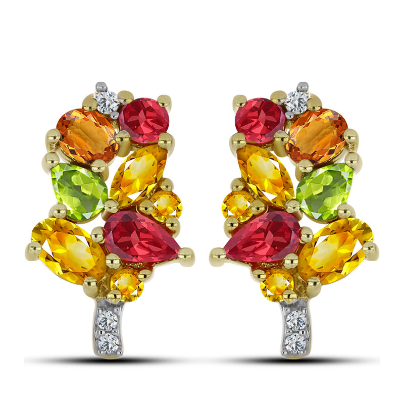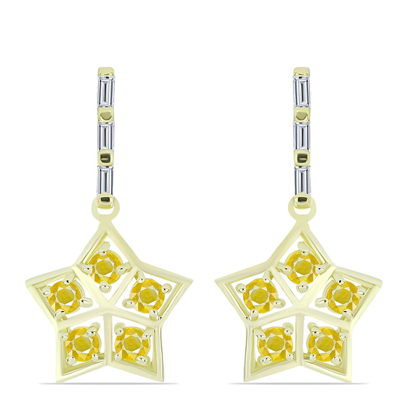 Arannyal Bevont Ezüst Fülbevaló Rosebery Sárga Zafírral és Fehér Cirkónnal