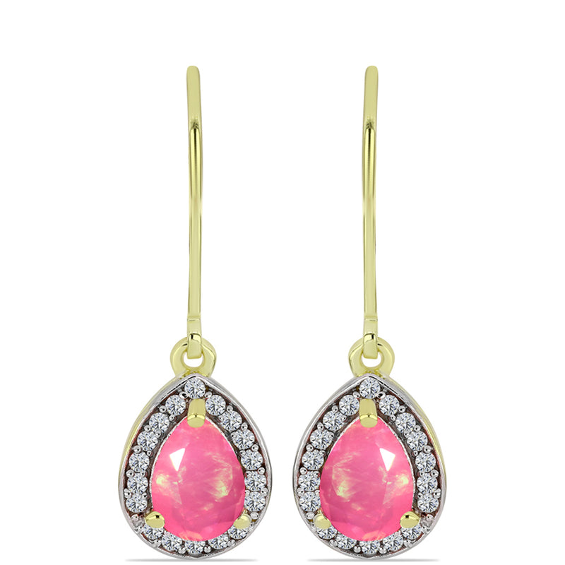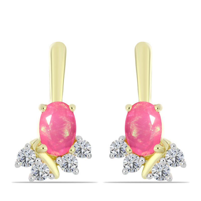 Arannyal Bevont Ezüst Fülbevaló Rózsaszínű Lega Dembi Etióp Opállal és Fehér Topázzal