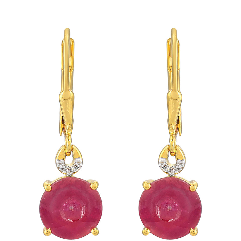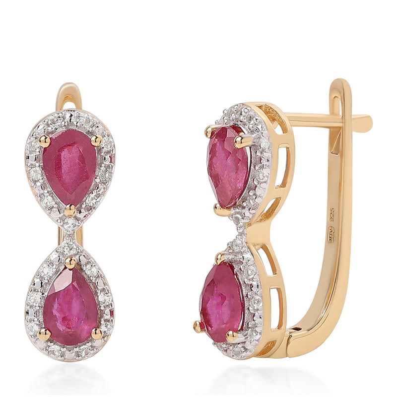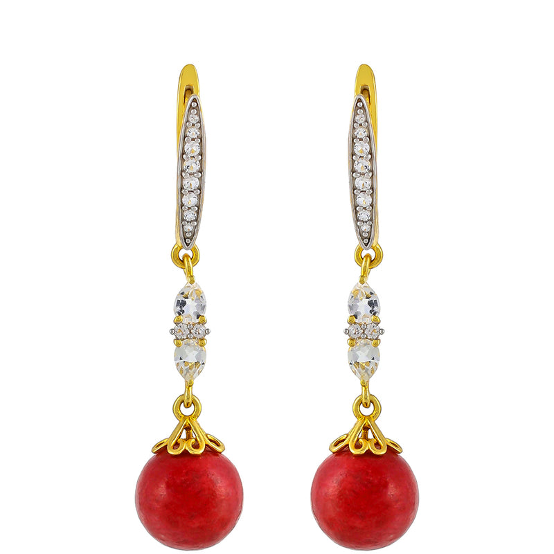 Arannyal Bevont Ezüst Fülbevaló Thai Rubinnal és Fehér Topázzal