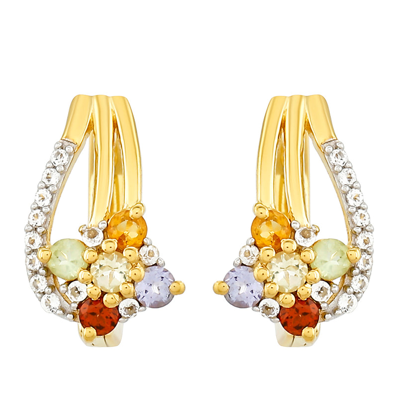Arannyal Bevont Ezüst Fülbevaló Tanzanittal és Citrinnel