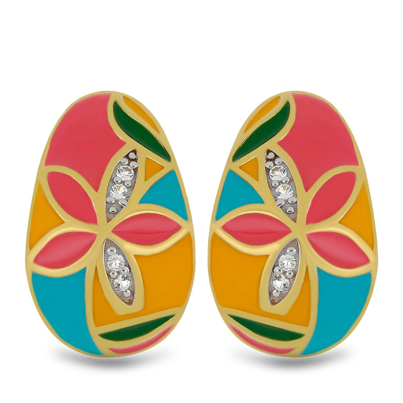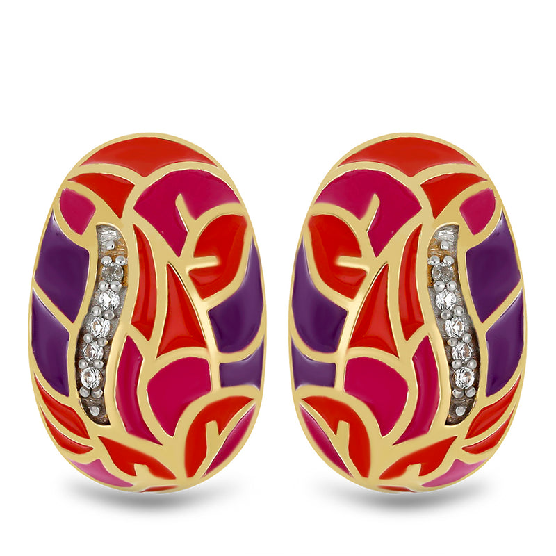 Arannyal Bevont Ezüst Fülbevaló Tűzzománccal