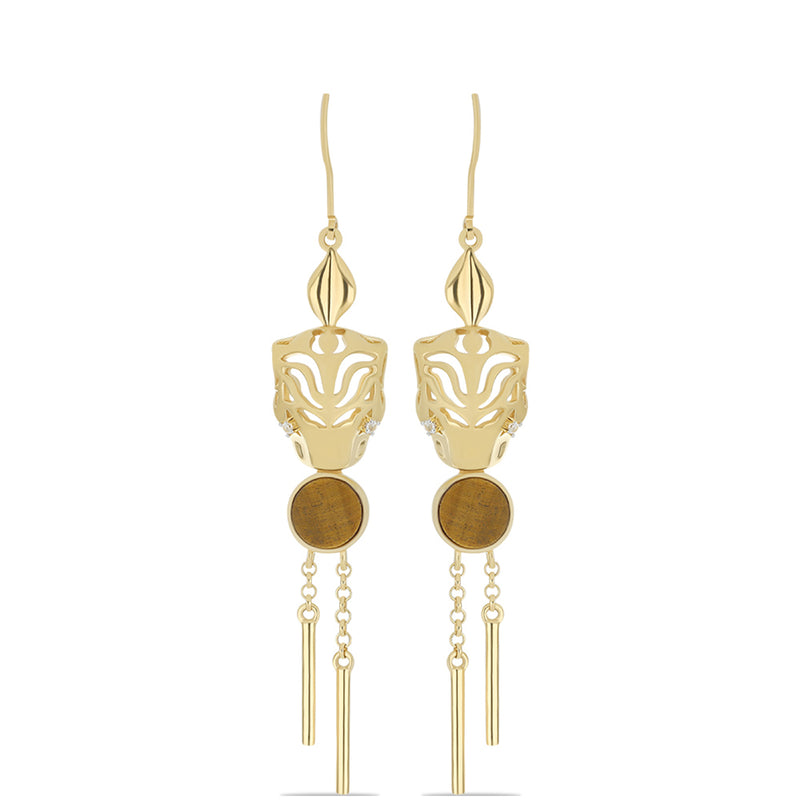 Arannyal Bevont Ezüst Fülbevaló Tigrisszem Drágakővel és Fehér Topázzal