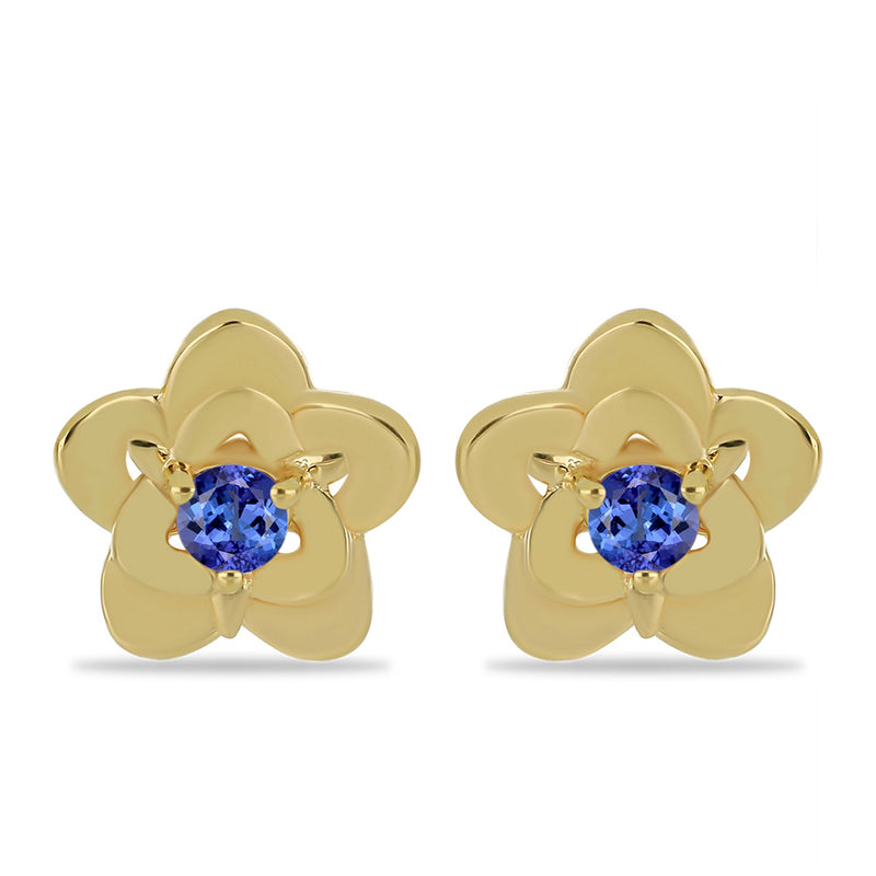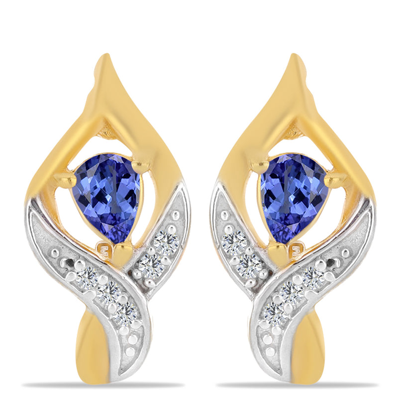 Arannyal Bevont Ezüst Fülbevaló Tanzanittal és Fehér Cirkónnal
