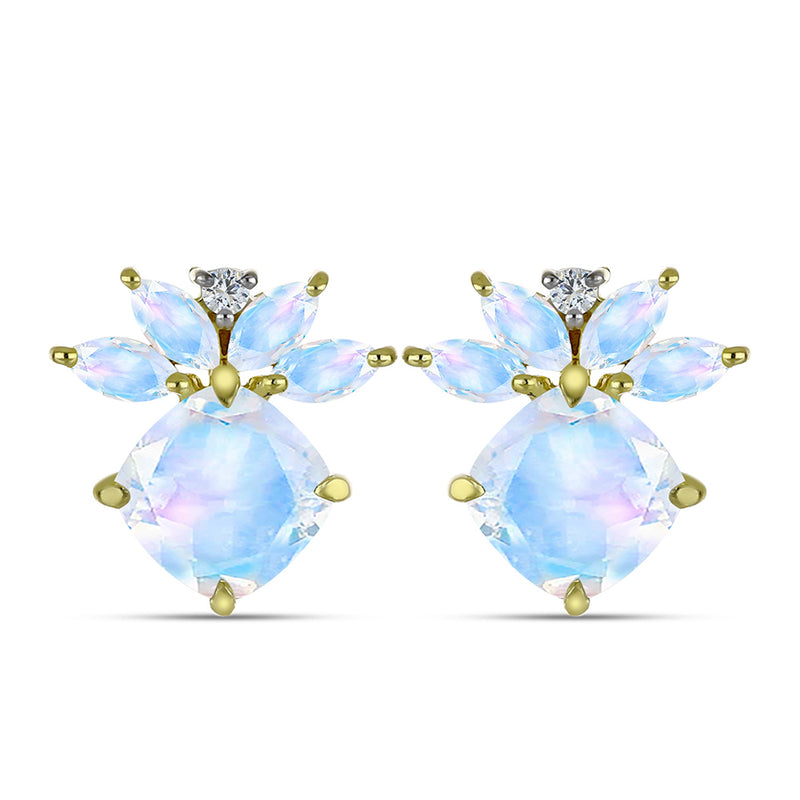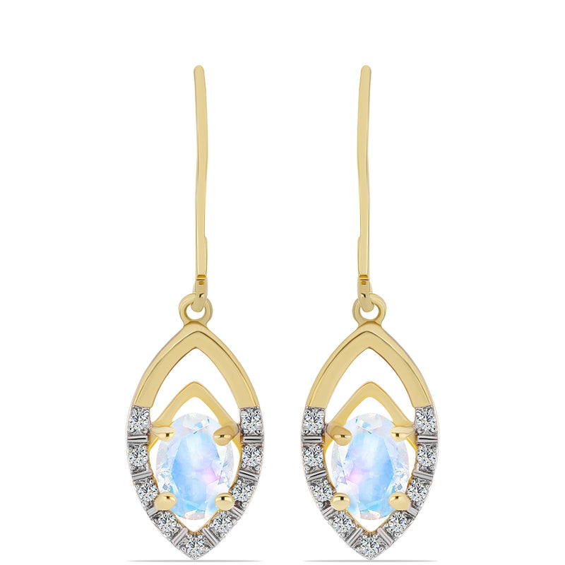 Arannyal Bevont Ezüst Fülbevaló Szivárvány Holdkővel és Fehér Topázzal