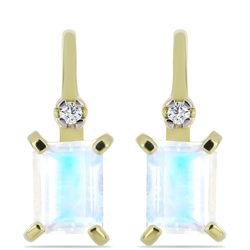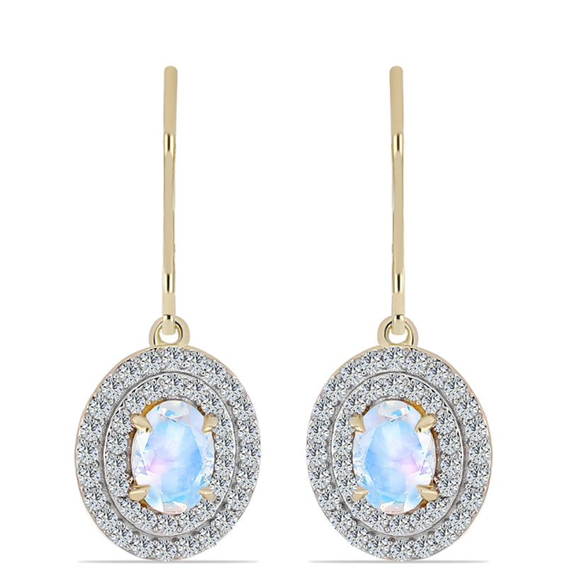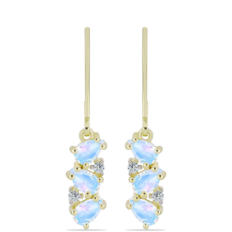 Arannyal Bevont Ezüst Fülbevaló Szivárvány Holdkővel és Fehér Topázzal