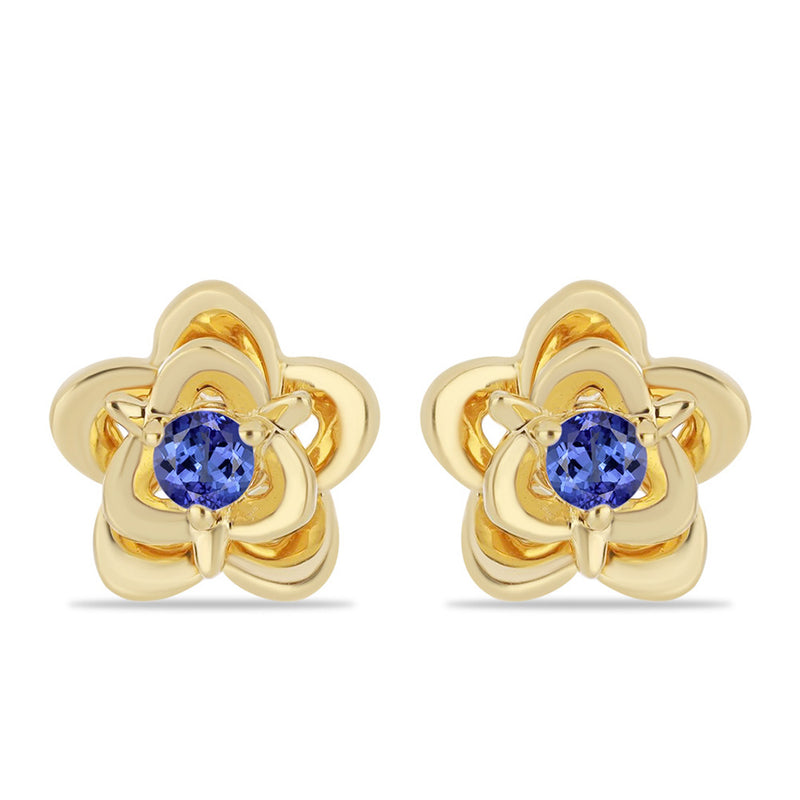 Arannyal Bevont Ezüst Fülbevaló Tanzanittal és Fehér Cirkónnal