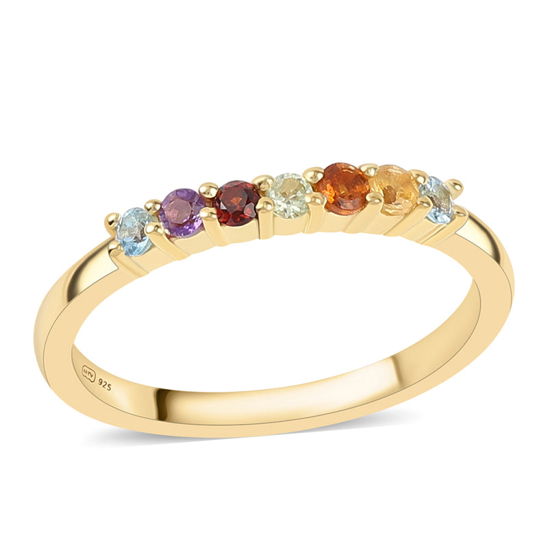 Arannyal Bevont Ezüst Gyűrű "AA" Osztályú Szivárvány Holdkővel és Fehér Topázzal