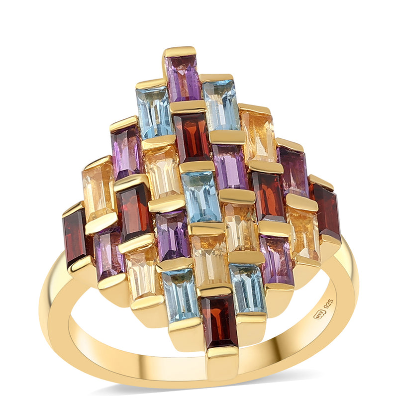 Arannyal Bevont Ezüst Gyűrű Afrikai Ametiszttel és Citrinnel
