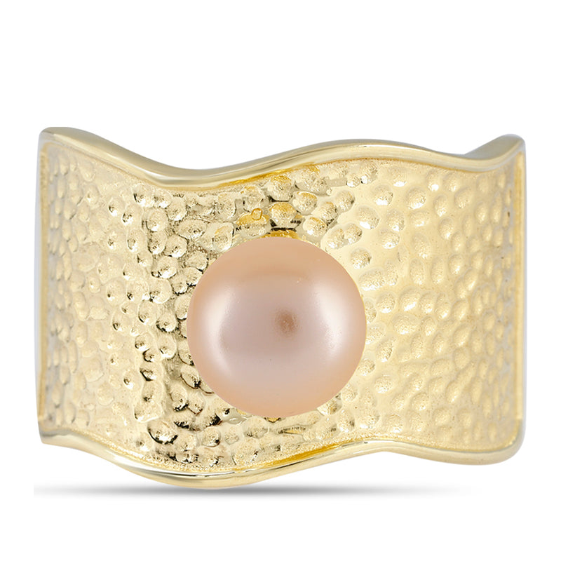 Arannyal Bevont Ezüst Gyűrű Arany színű Édesvízi Kagylógyönggyel