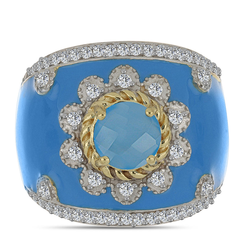 Arannyal Bevont Ezüst Gyűrű Aqua Kalcedonnal és Fehér Topázzal