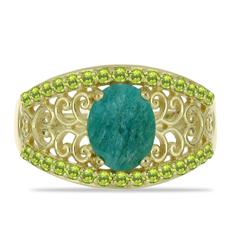 Arannyal Bevont Ezüst Gyűrű Amazonittal és Changbai Peridottal