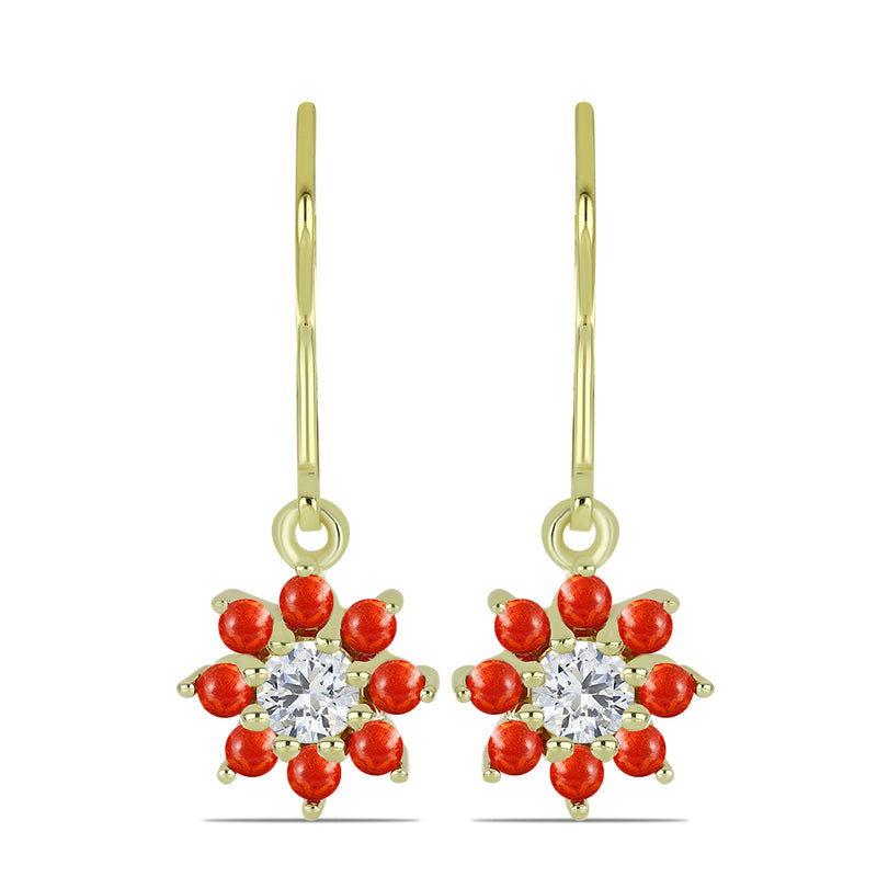 Arannyal Bevont Ezüst Fülbevaló Vörös Korallal