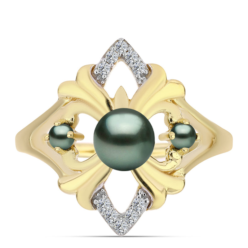 Arannyal Bevont Ezüst Gyűrű "Tahiti-zöld" illúzió édesvízi Kagylógyönggyel és Fehér Topázzal