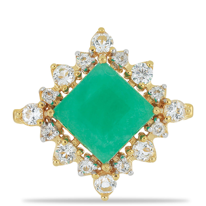 Arannyal Bevont Ezüst Gyűrű Brazil Smaragddal és Fehér Topázzal