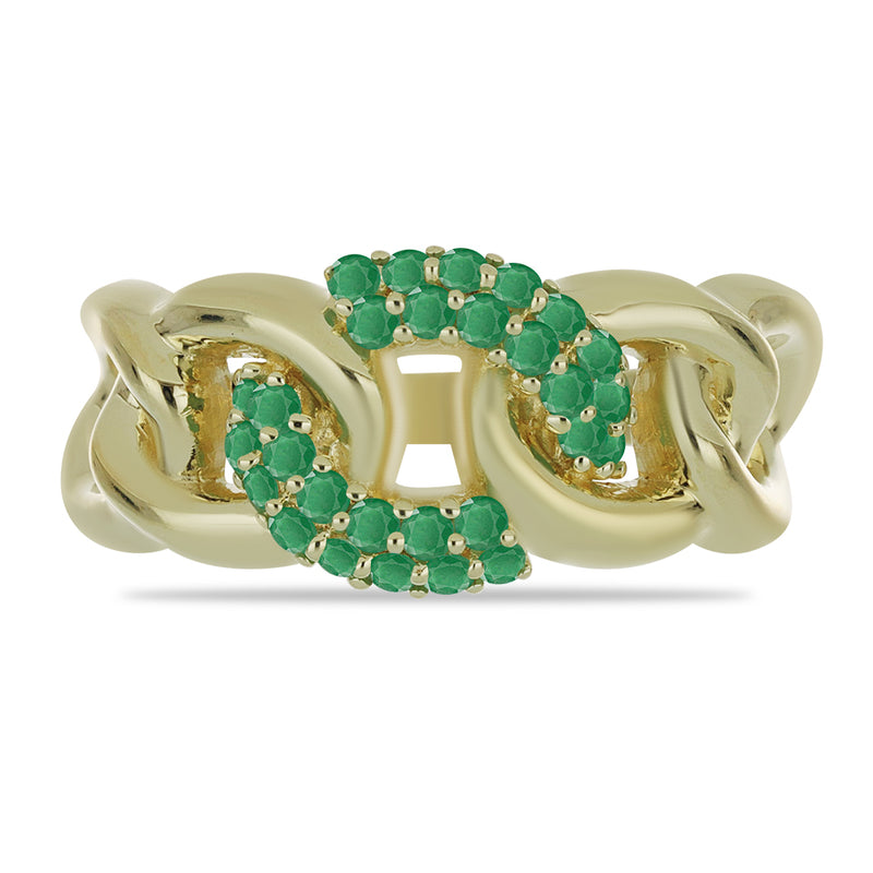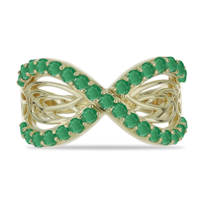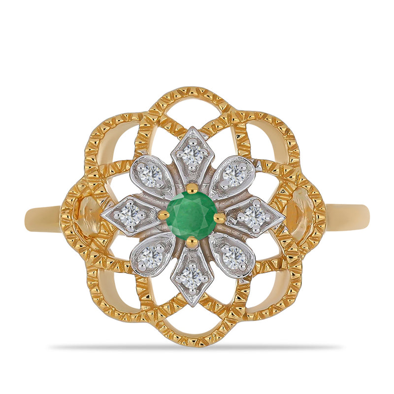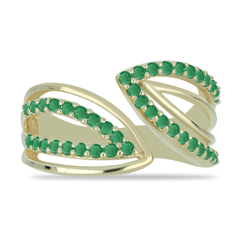 Arannyal Bevont Ezüst Gyűrű Brazil Smaragddal és Fehér Cirkónnal