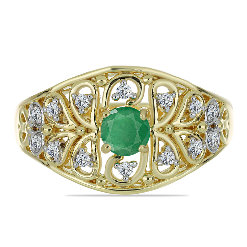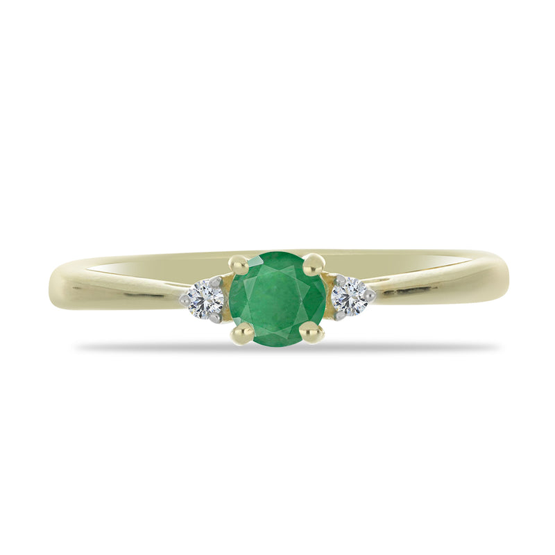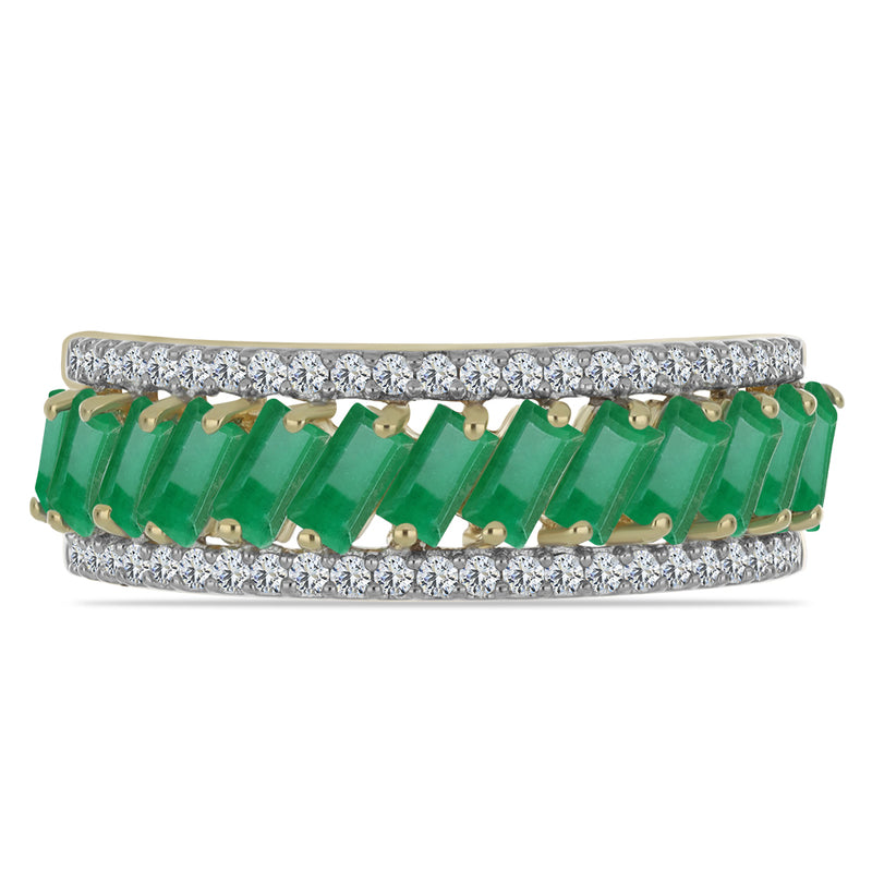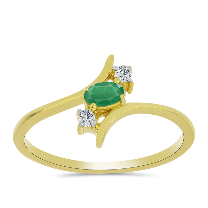 Arannyal Bevont Ezüst Gyűrű Brazil Smaragddal és Fehér Gyémánttal