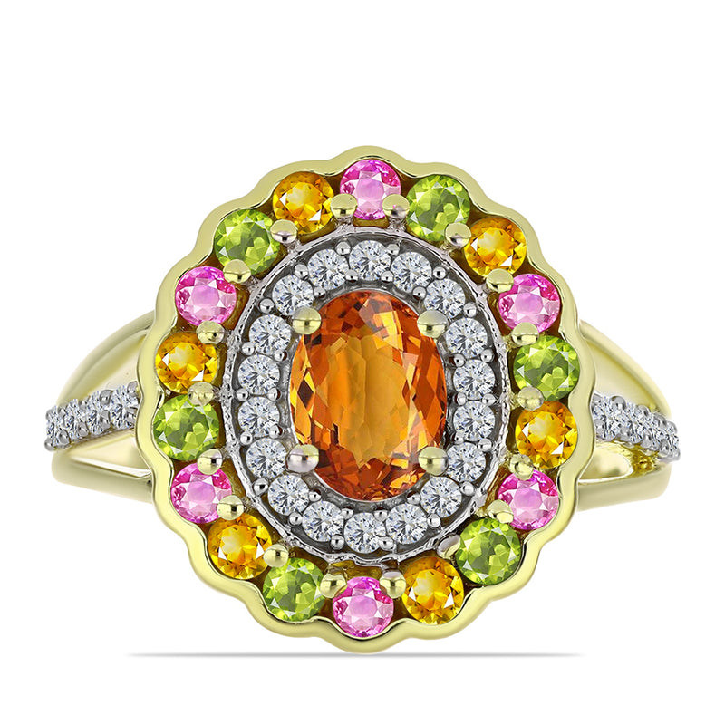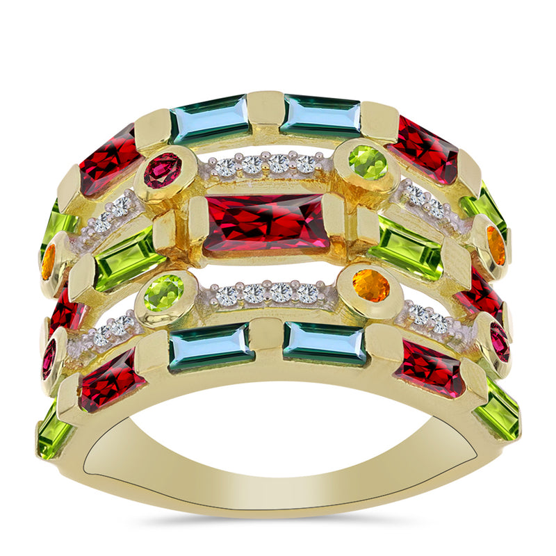 Arannyal Bevont Ezüst Gyűrű Csakra Tourmalinnal és Fehér Topázzal
