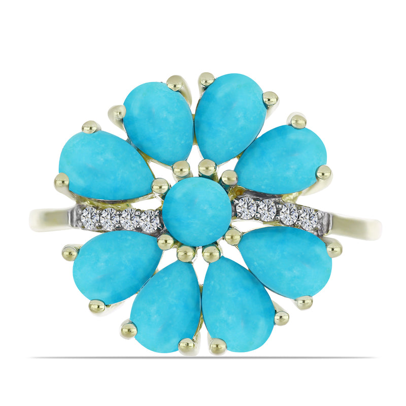 Arannyal Bevont Ezüst Gyűrű Csipkerózsika Türkizzel és Fehér Topázzal