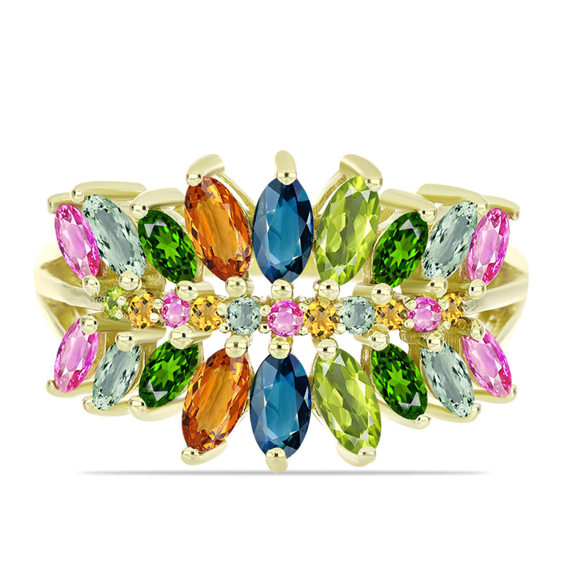 Arannyal Bevont Ezüst Gyűrű Csipkerózsika Türkizzel és Citrinnel