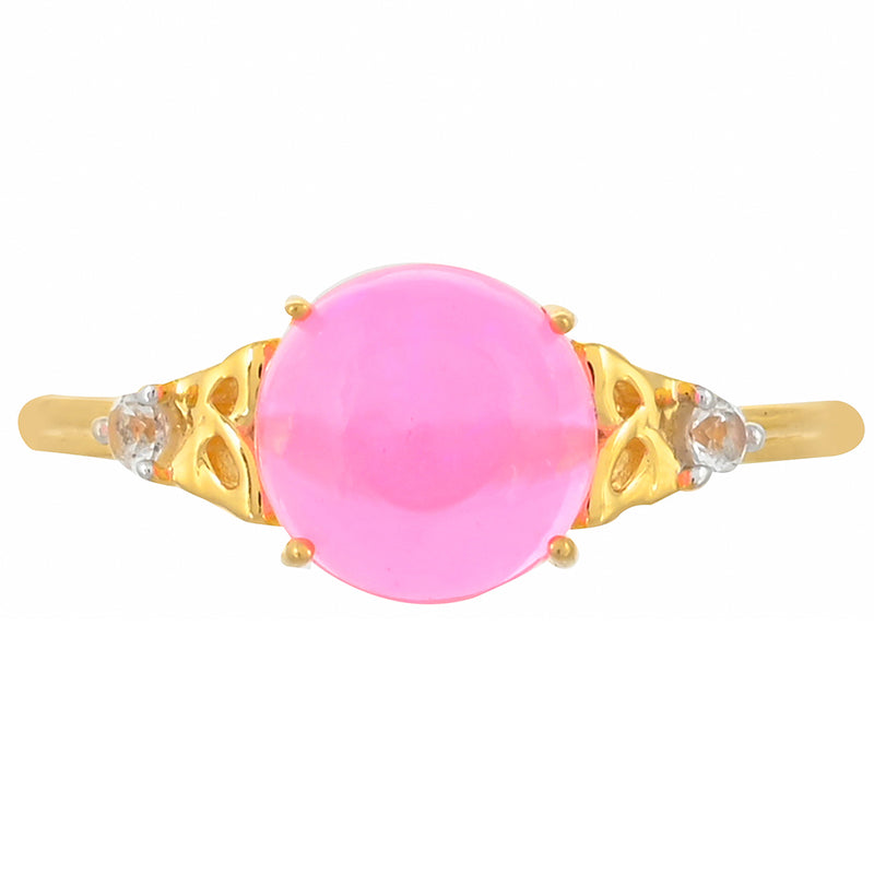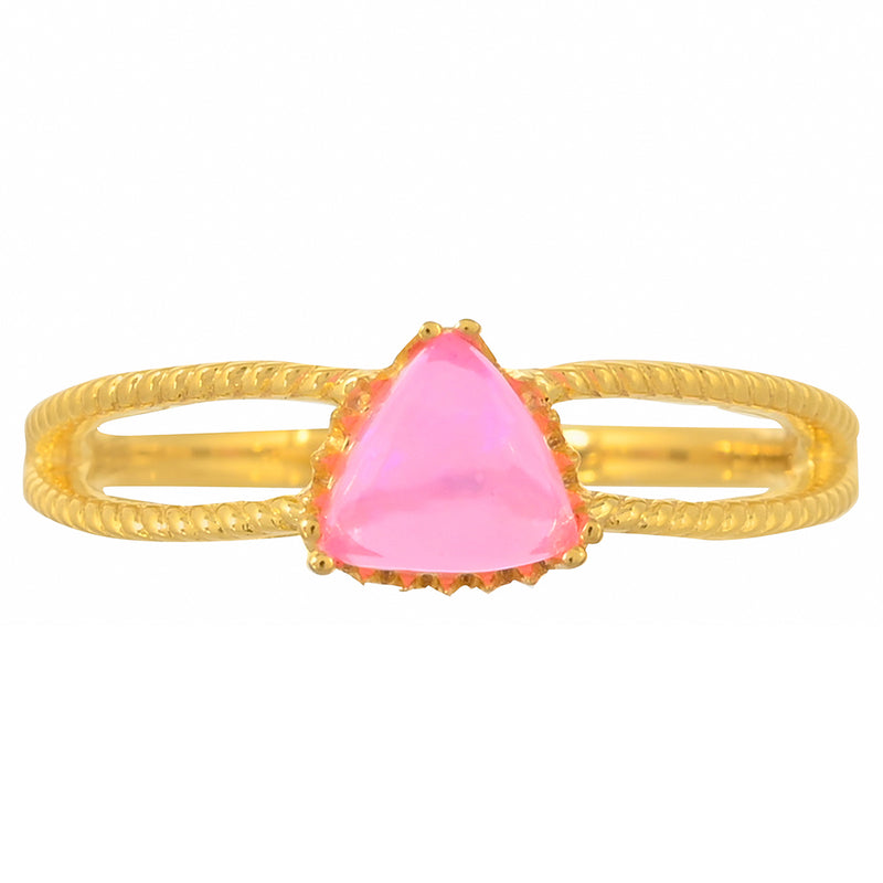 Arannyal Bevont Ezüst Gyűrű Etiópiai Neon Pink Opállal és Fehér Topázzal