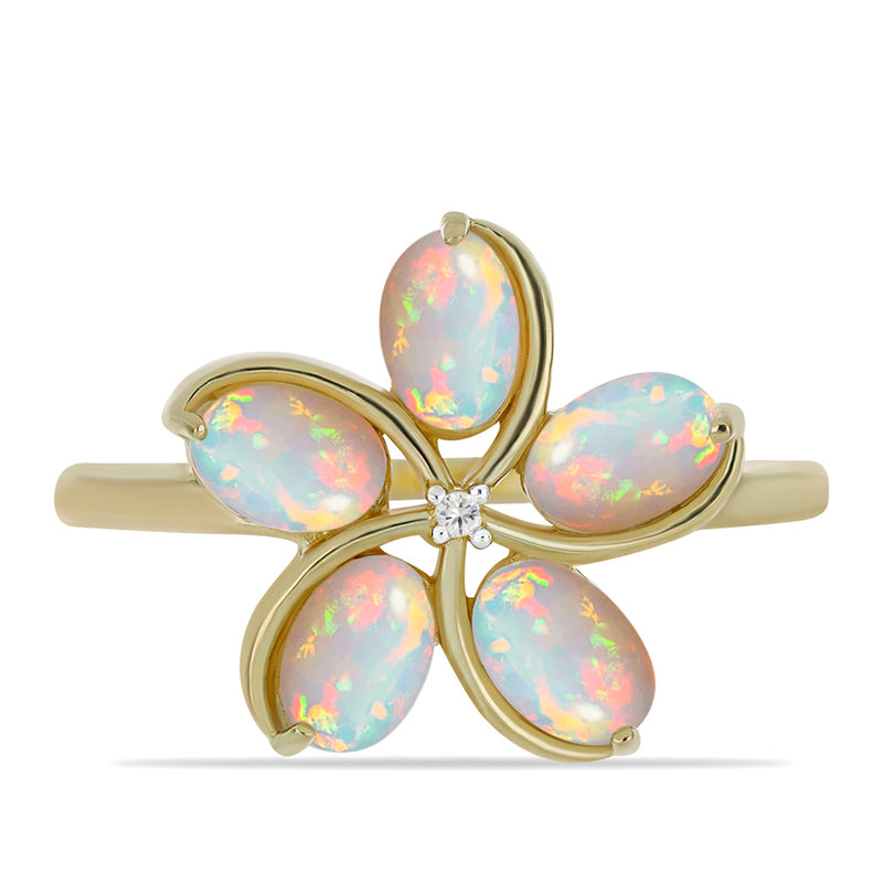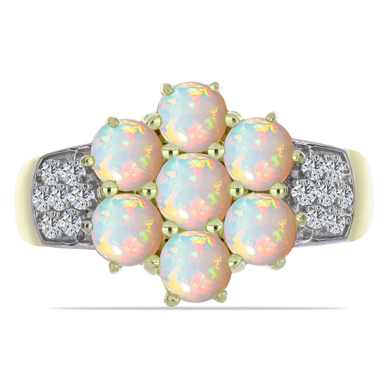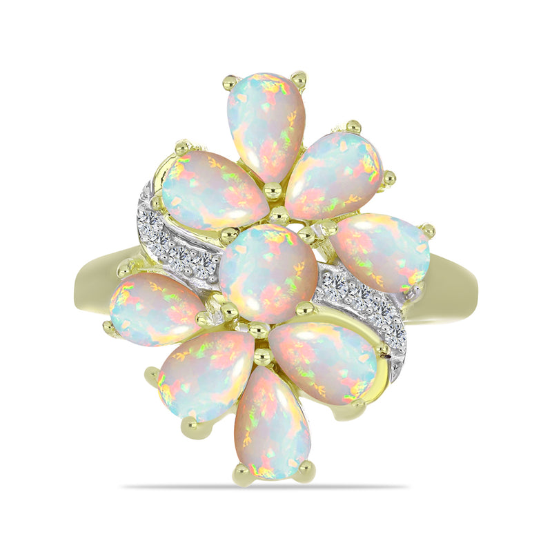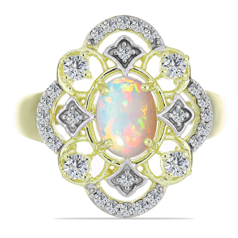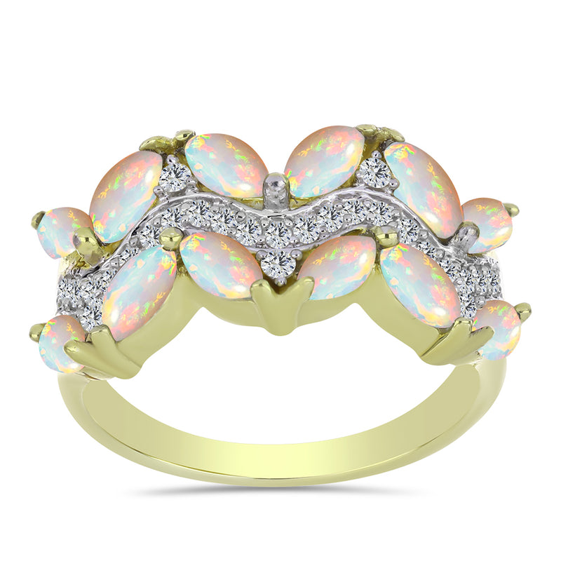 Arannyal Bevont Ezüst Gyűrű Etiópiai Opállal és Fehér Topázzal