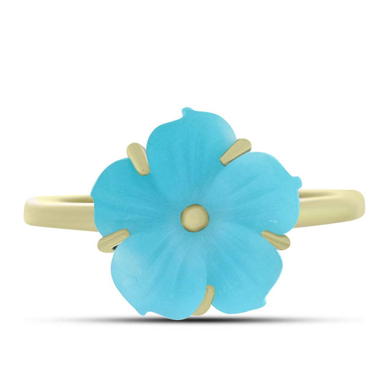 Arannyal Bevont Ezüst Gyűrű Csipkerózsika Türkizzel és Fehér Édesvízi Kagylógyönggyel