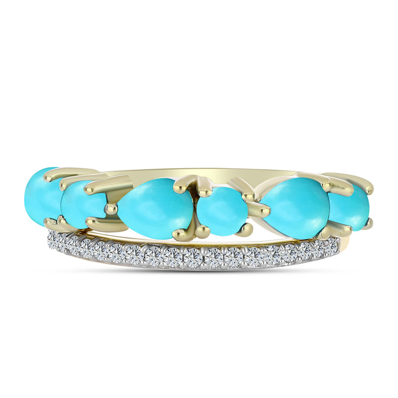 Arannyal Bevont Ezüst Gyűrű Csipkerózsika Türkizzel és Fehér Topázzal