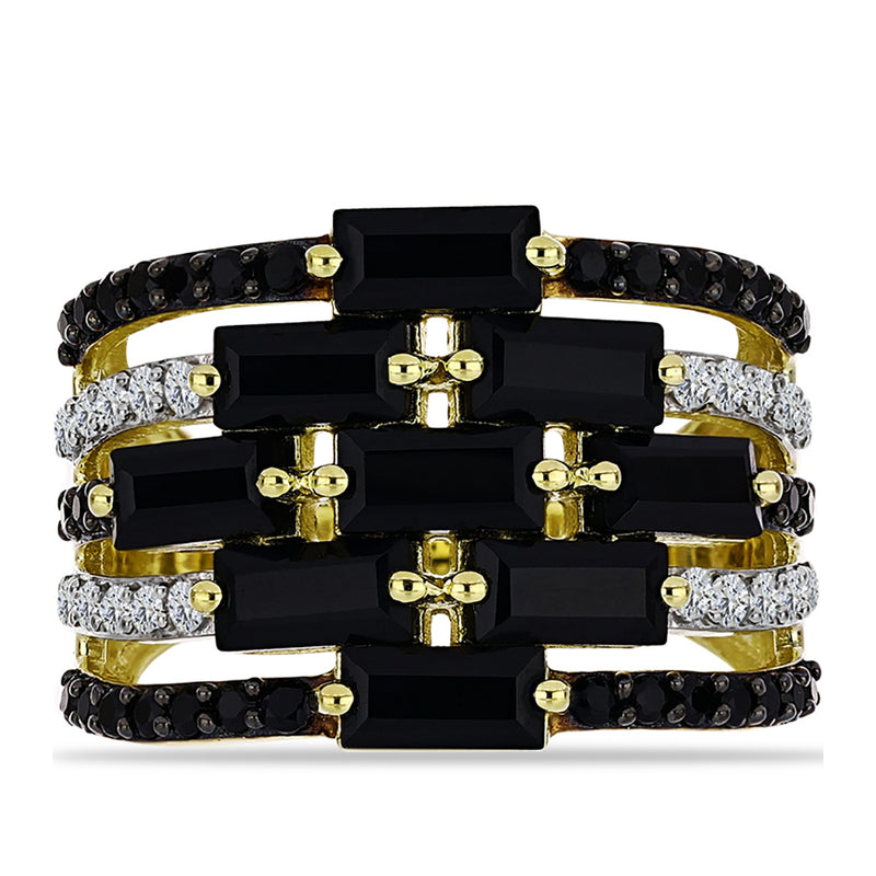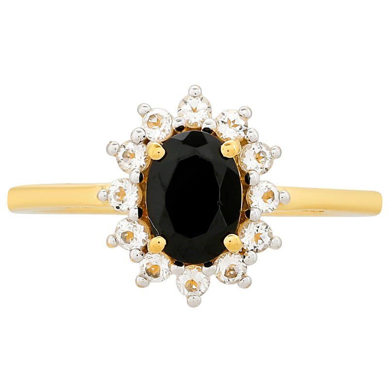 Arannyal Bevont Ezüst Gyűrű Fekete Spinellel és Fehér Topázzal