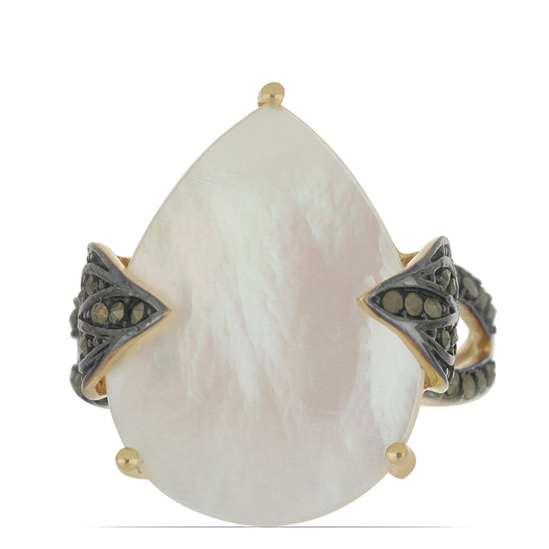 Arannyal Bevont Ezüst Gyűrű Gyöngyházzal és Markazittal