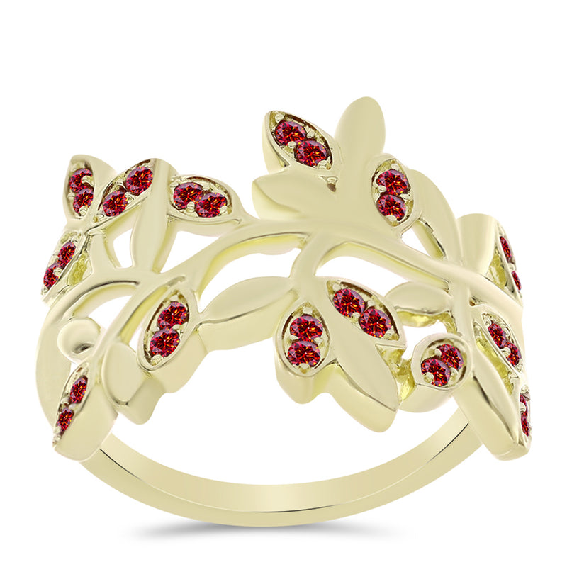Arannyal Bevont Ezüst Gyűrű Fenséges Vörös Moissanite-tal és Fehér Topázzal