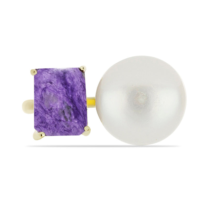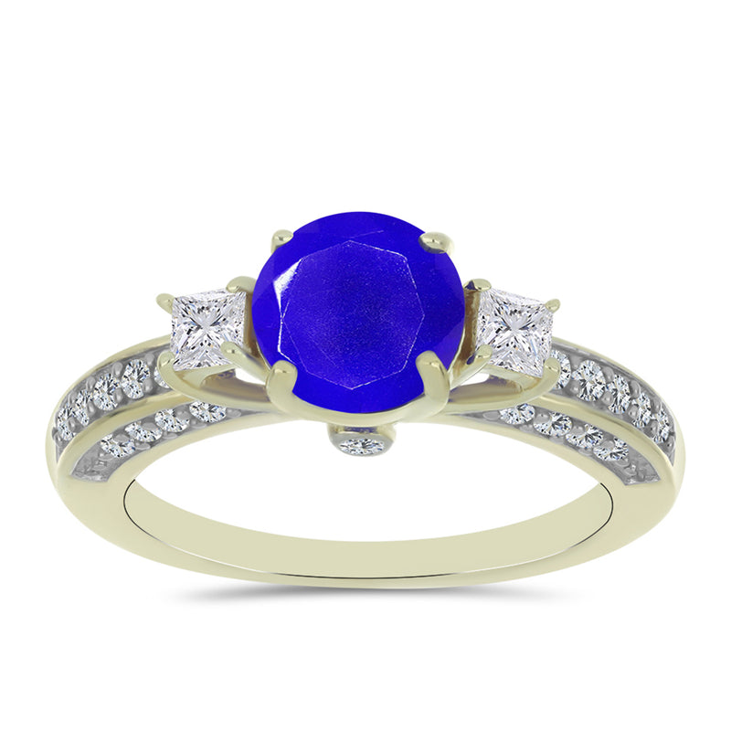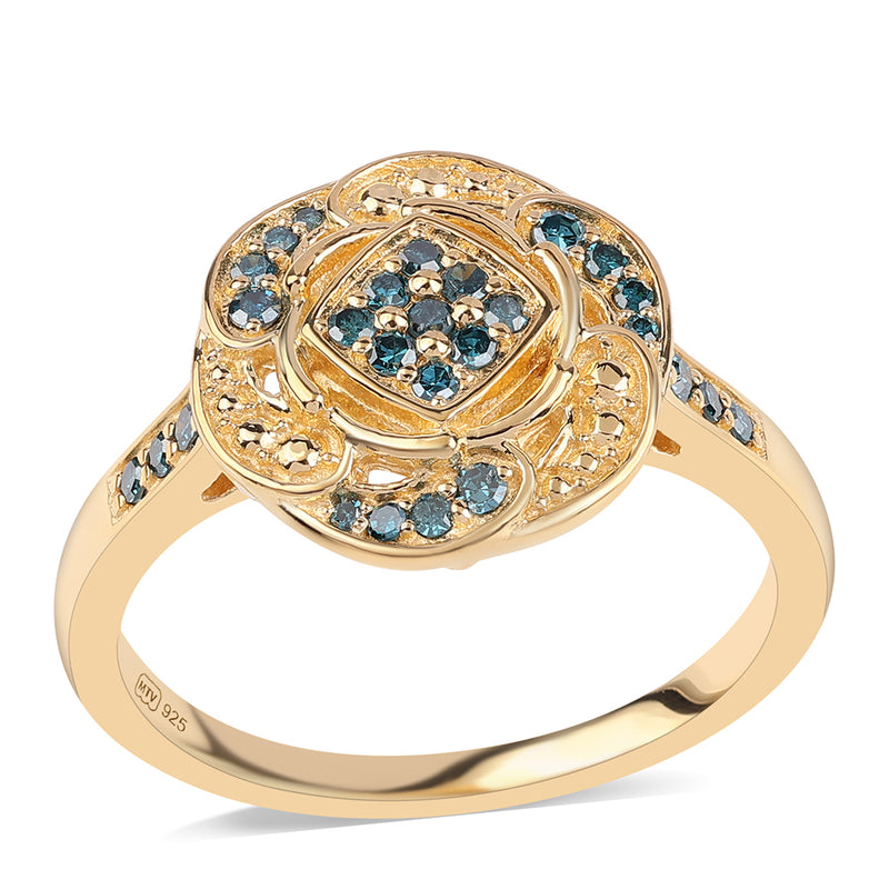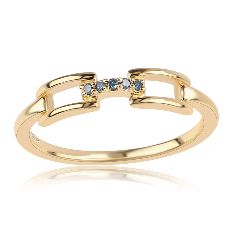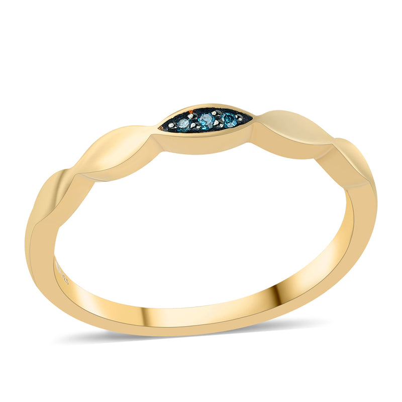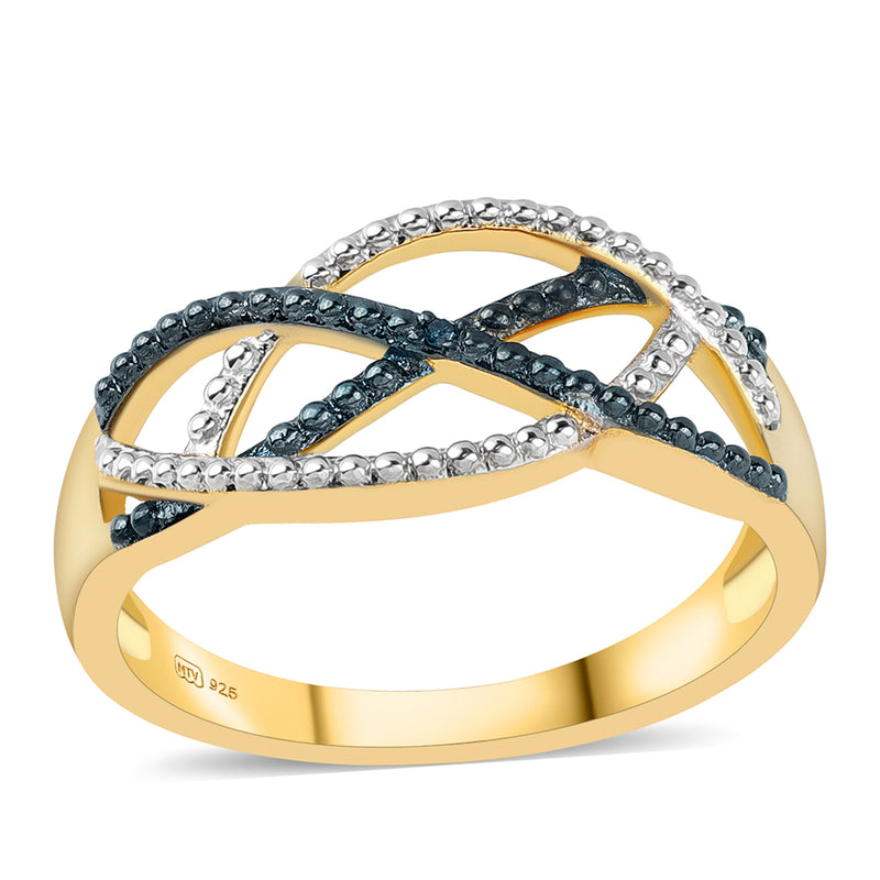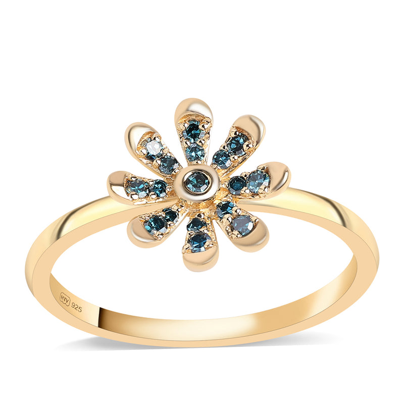 Arannyal Bevont Ezüst Gyűrű Kék Gyémánttal