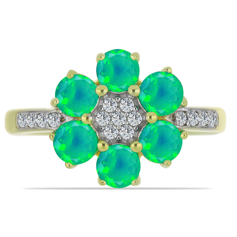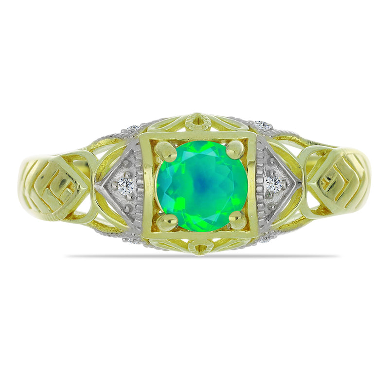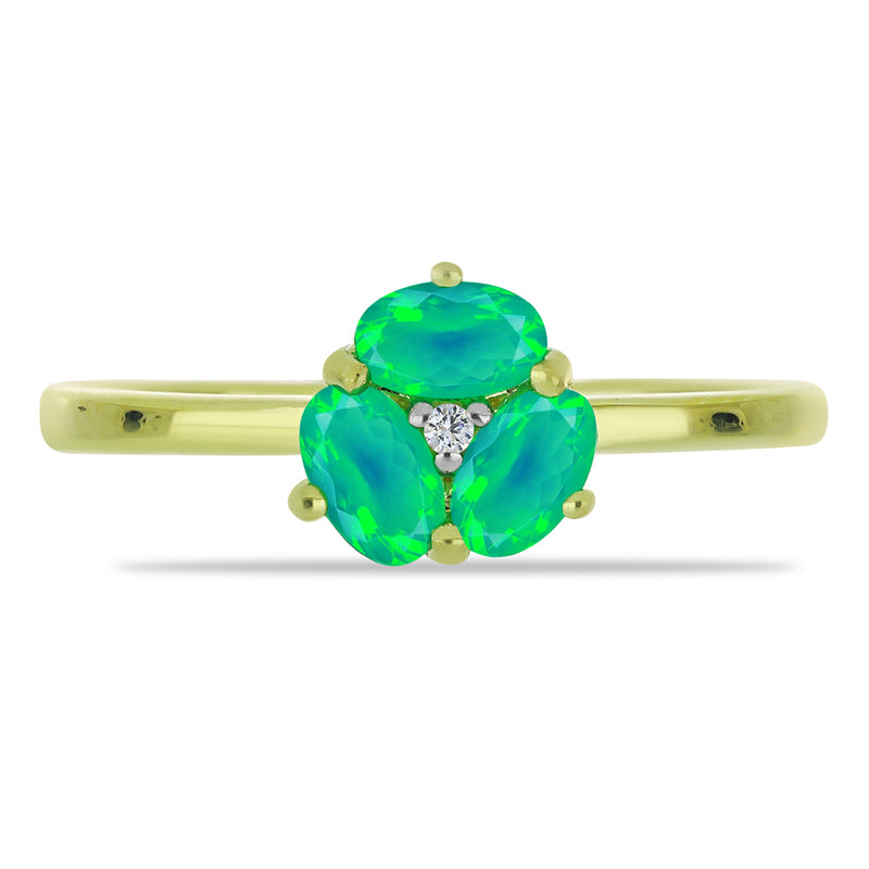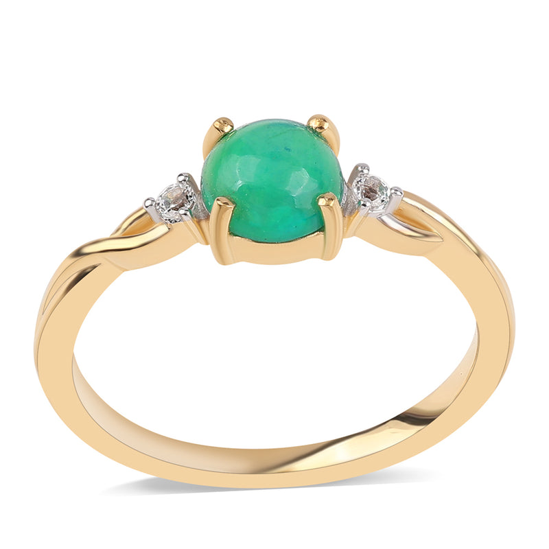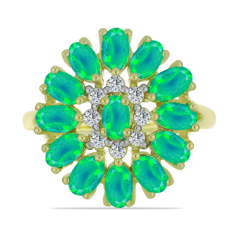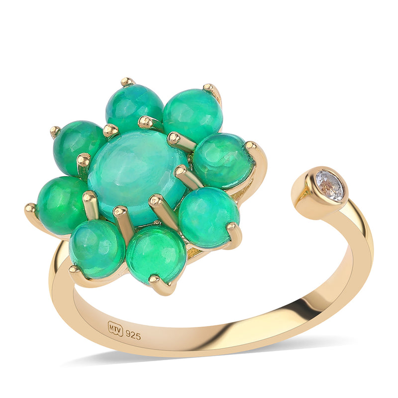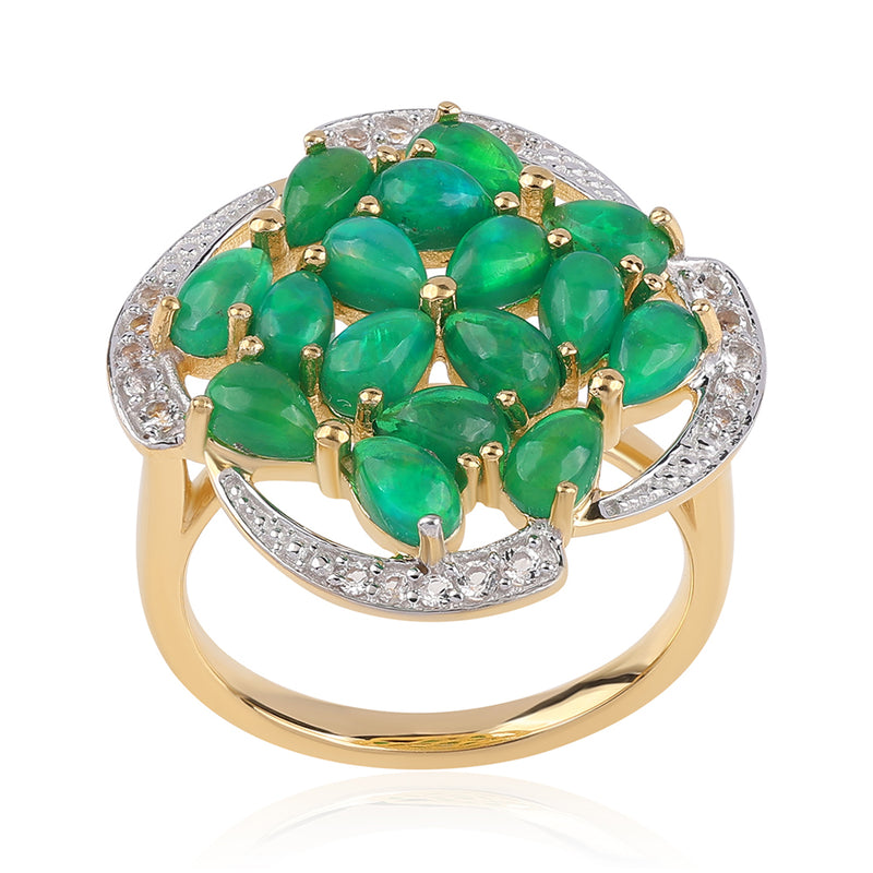Arannyal Bevont Ezüst Gyűrű Lega Dembi Zöld Etiópiai Opállal és Fehér Topázzal