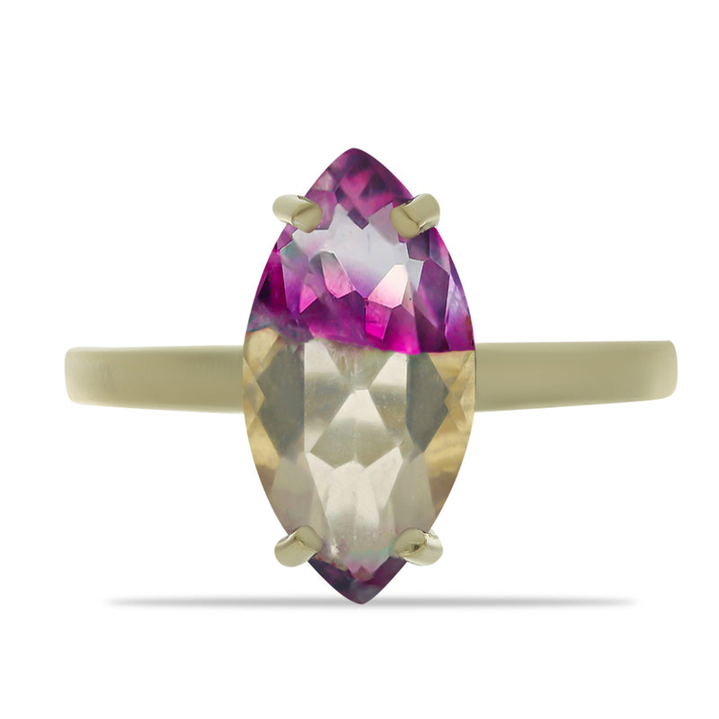 Arannyal Bevont Ezüst Gyűrű Lila Fluorittal és Fehér Topázzal