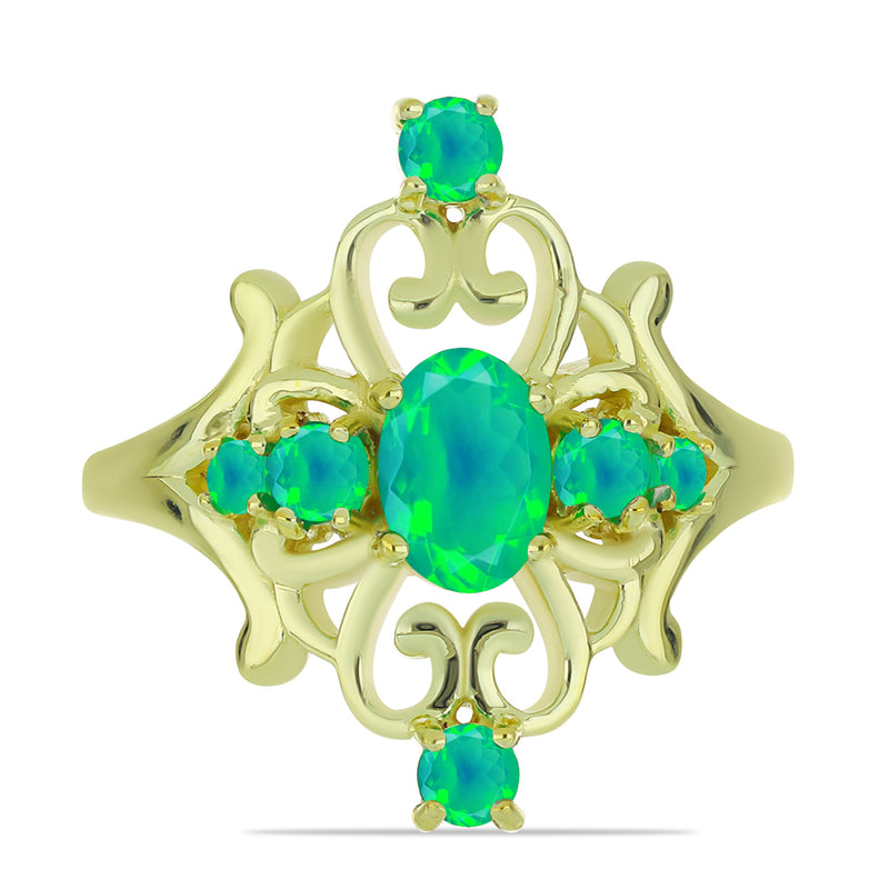 Arannyal Bevont Ezüst Gyűrű Lega Dembi Zöld Etiópiai Opállal