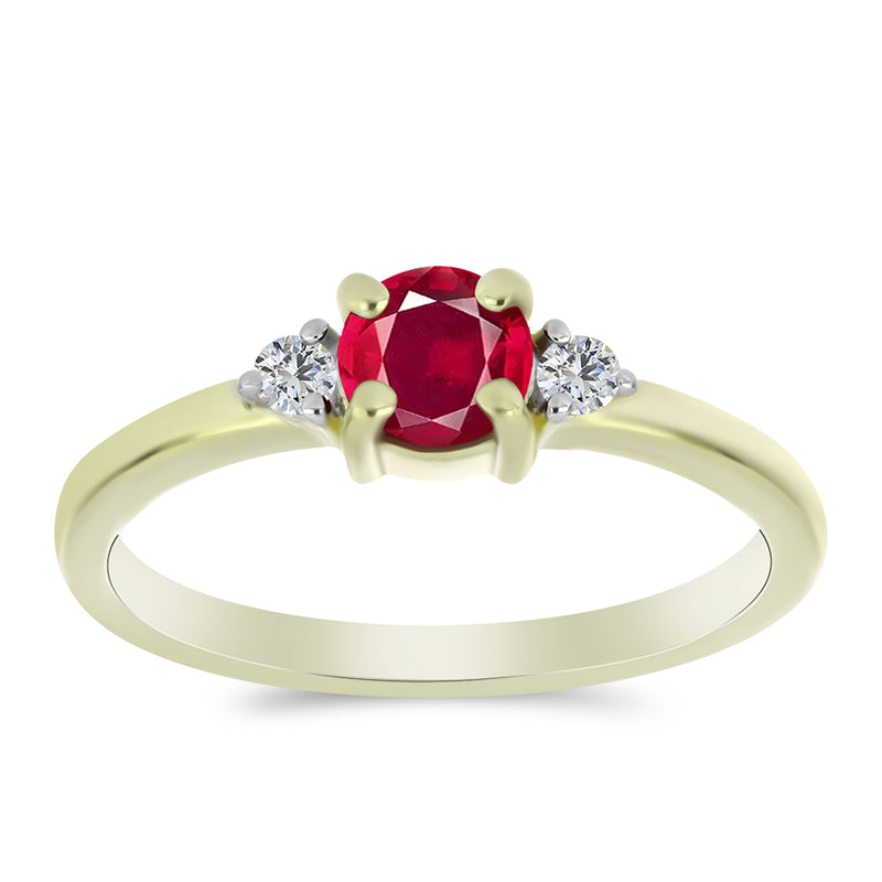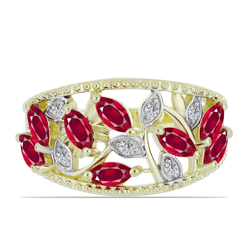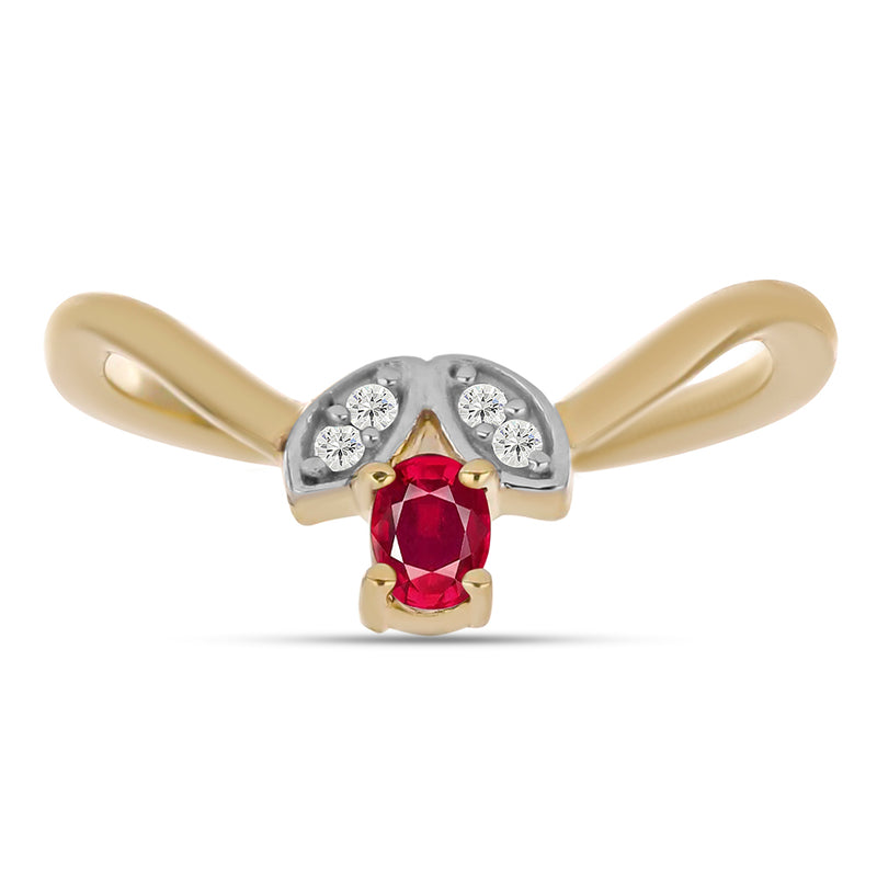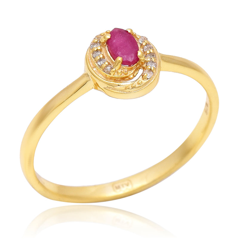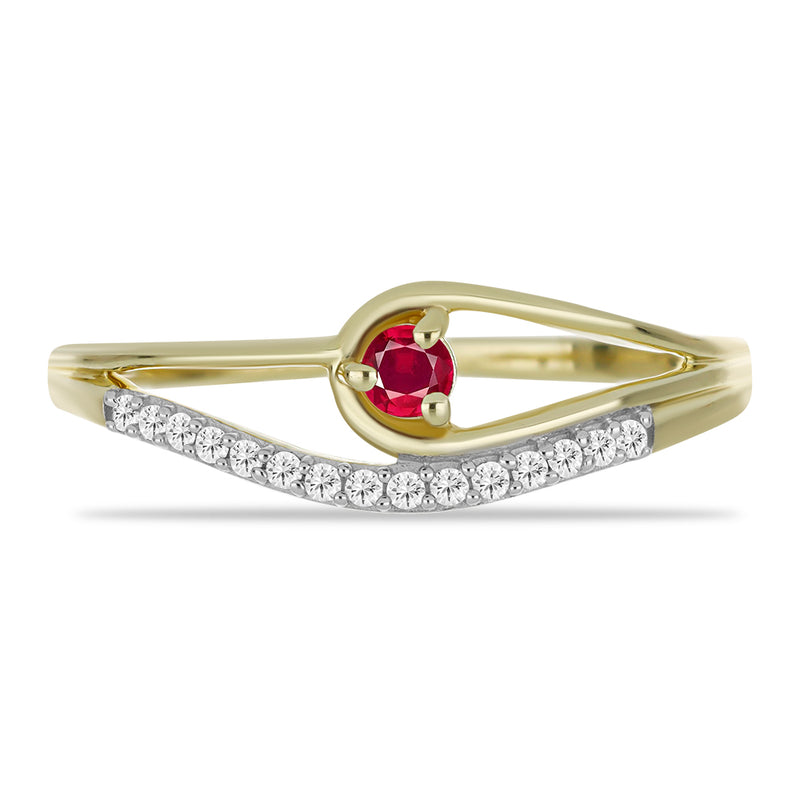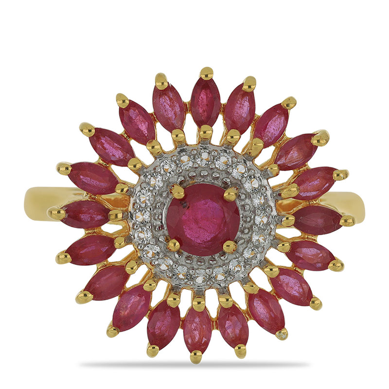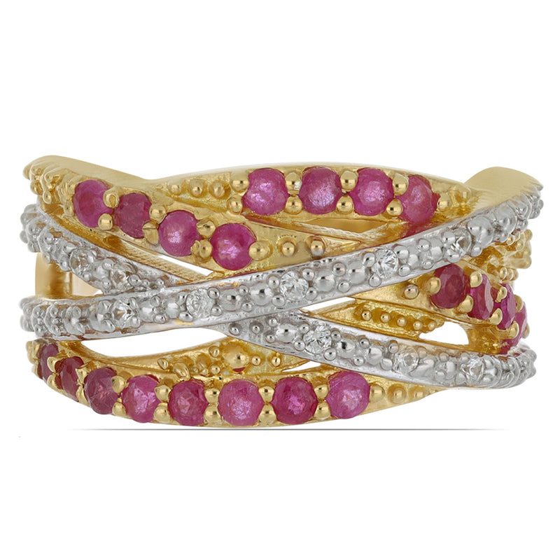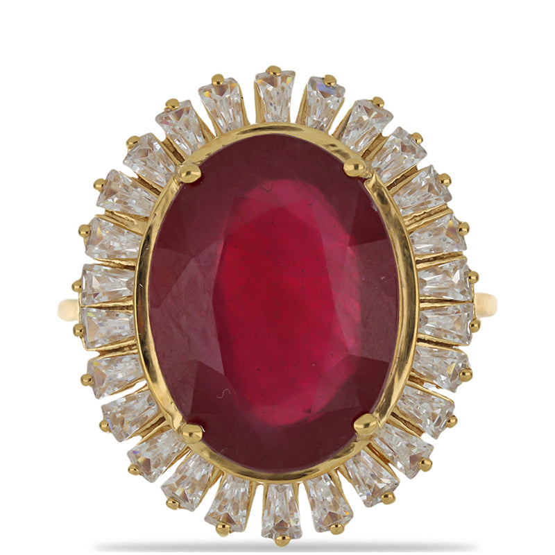 Arannyal Bevont Ezüst Gyűrű Madagaszkári Rubinnal és Fehér Cirkónnal