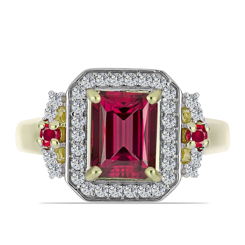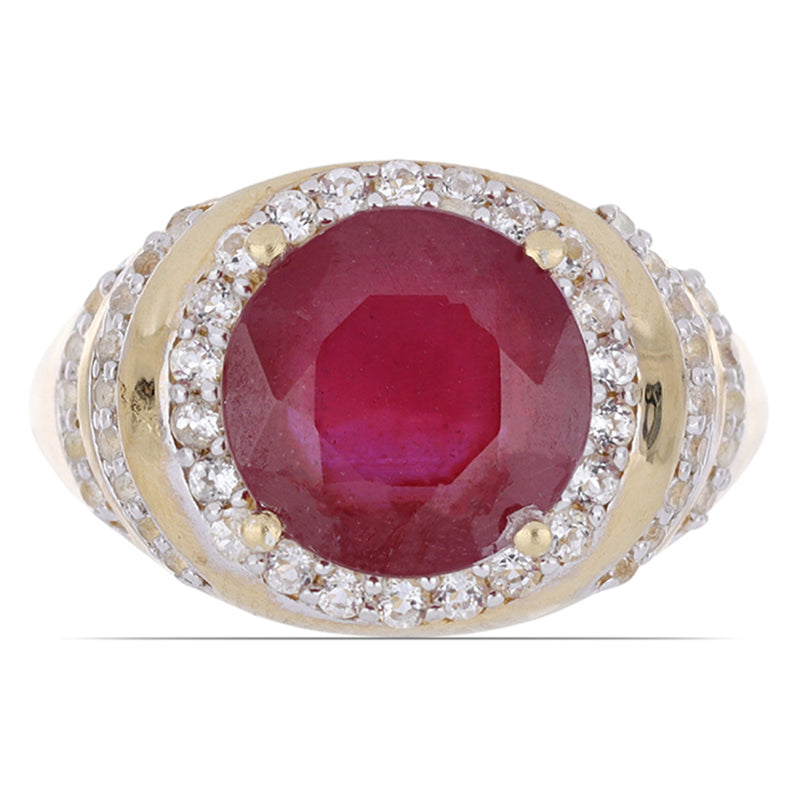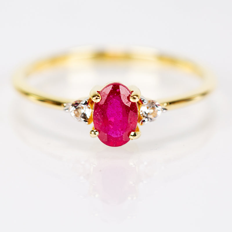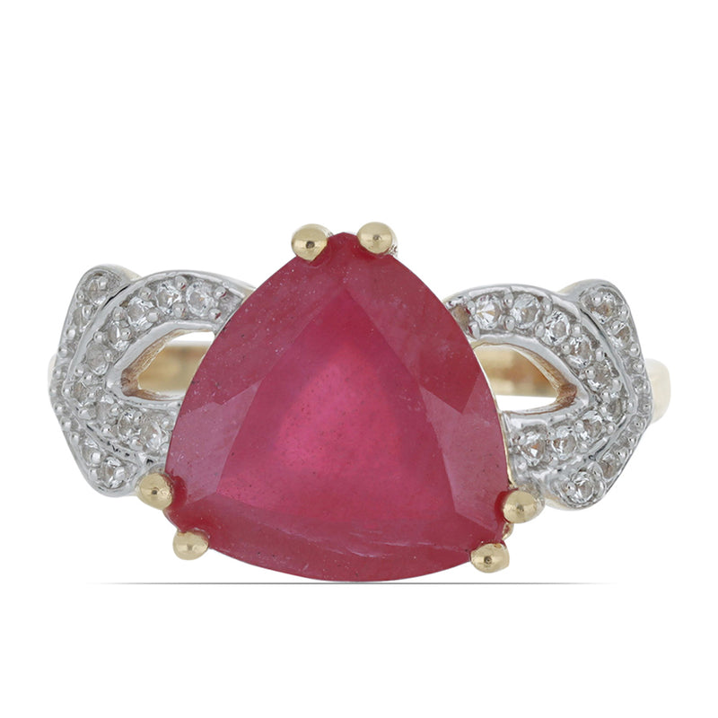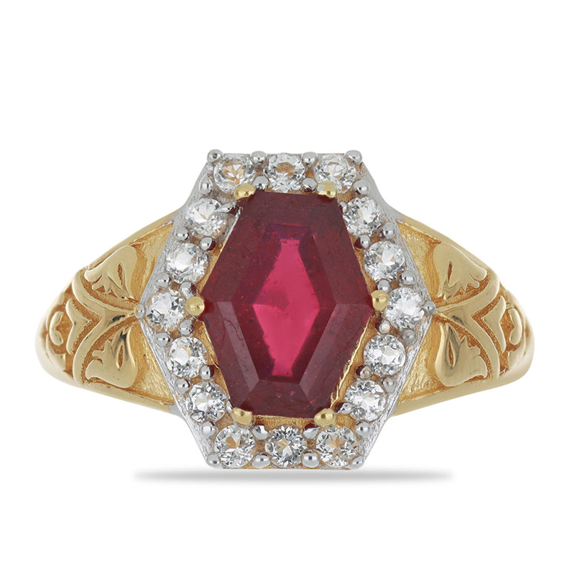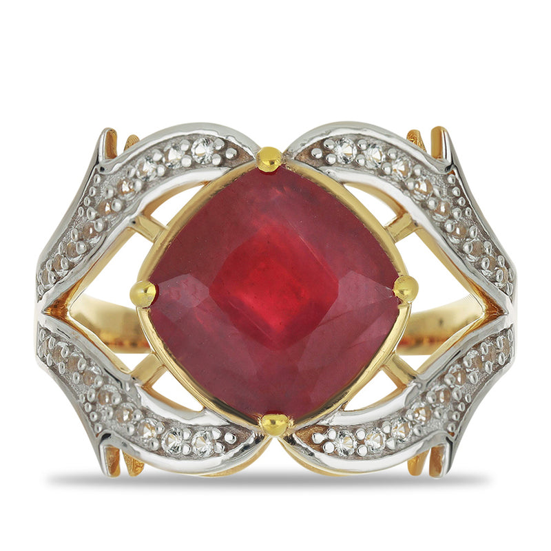 Arannyal Bevont Ezüst Gyűrű Madagaszkári Rubinnal és Fehér Topázzal