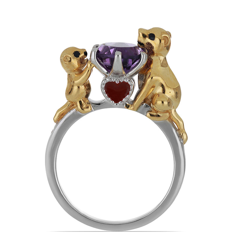 Arannyal Bevont Ezüst Gyűrű Marokkói Ametiszttel és Fehér Topázzal