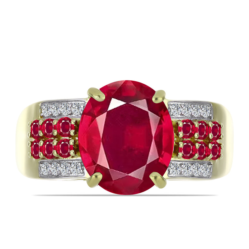 Arannyal Bevont Ezüst Gyűrű Madagaszkári Rubinnal és Természetes Fehér Cirkónnal