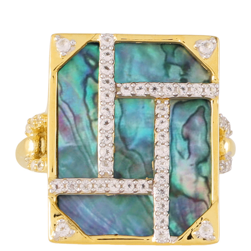 Arannyal Bevont Ezüst Gyűrű Paua Kagylóval és Fehér Topázzal