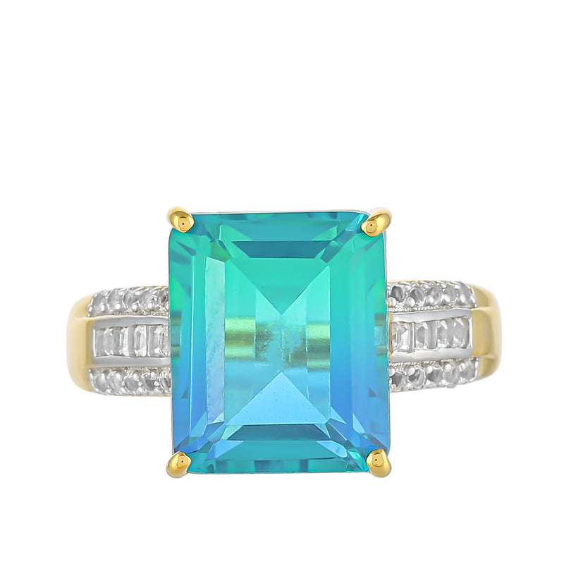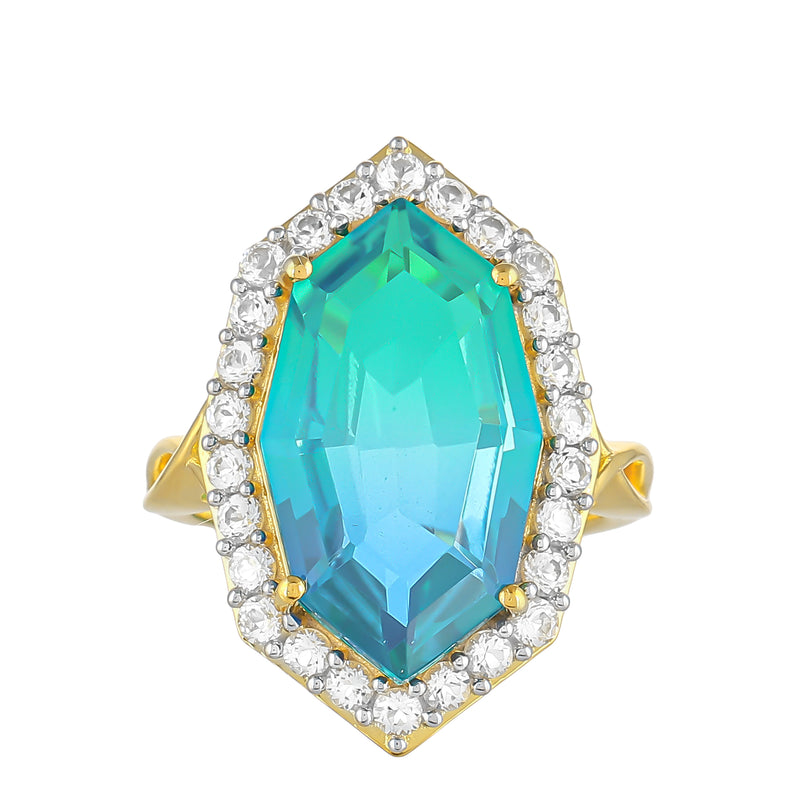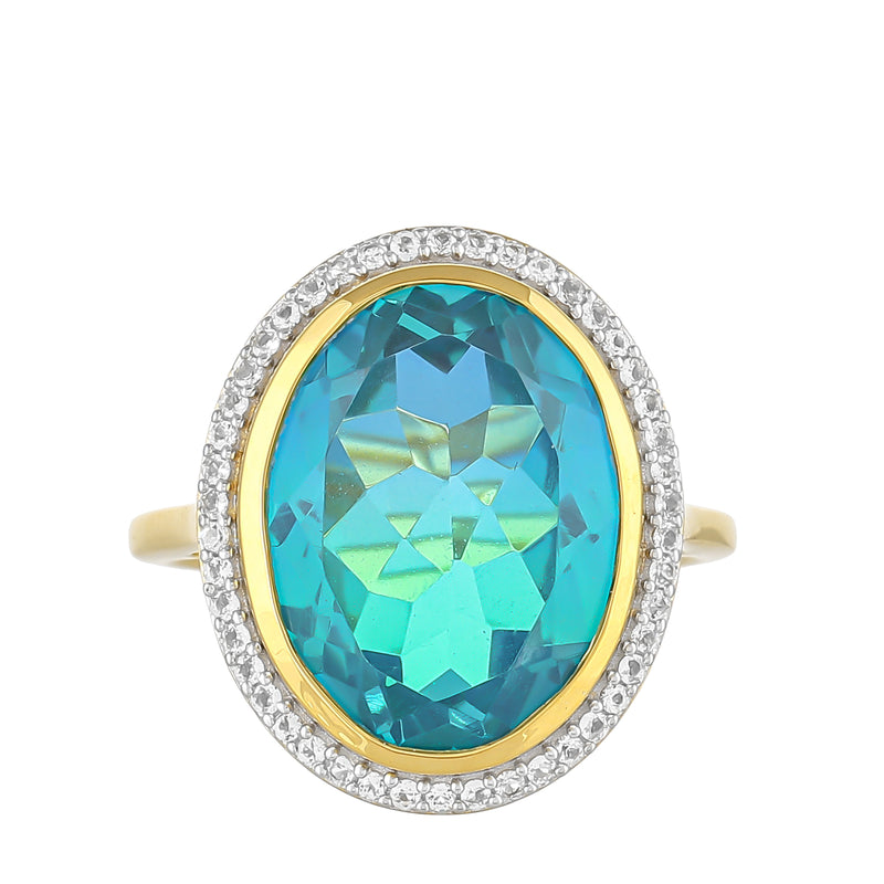 Arannyal Bevont Ezüst Gyűrű Paraiba Kvarccal és Fehér Topázzal