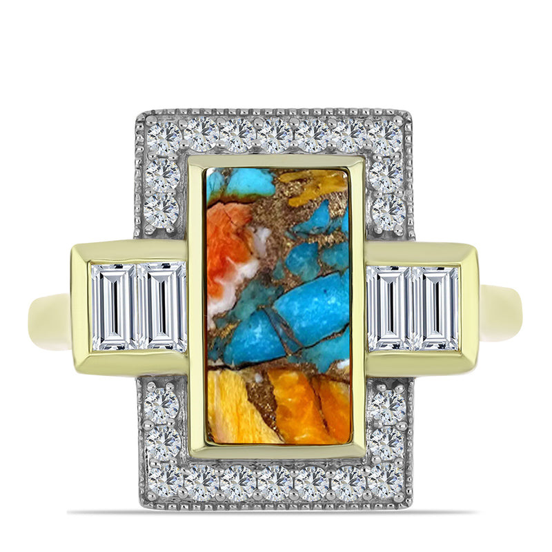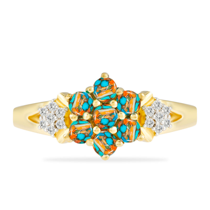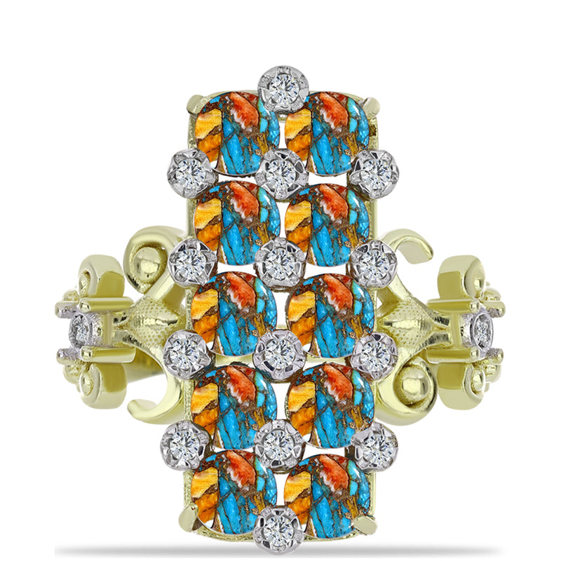 Arannyal Bevont Ezüst Gyűrű Osztriga Türkizzel és Fehér Topázzal