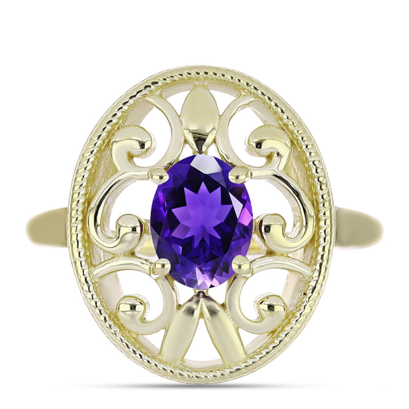 Arannyal Bevont Ezüst Gyűrű Marokkói Ametiszttel