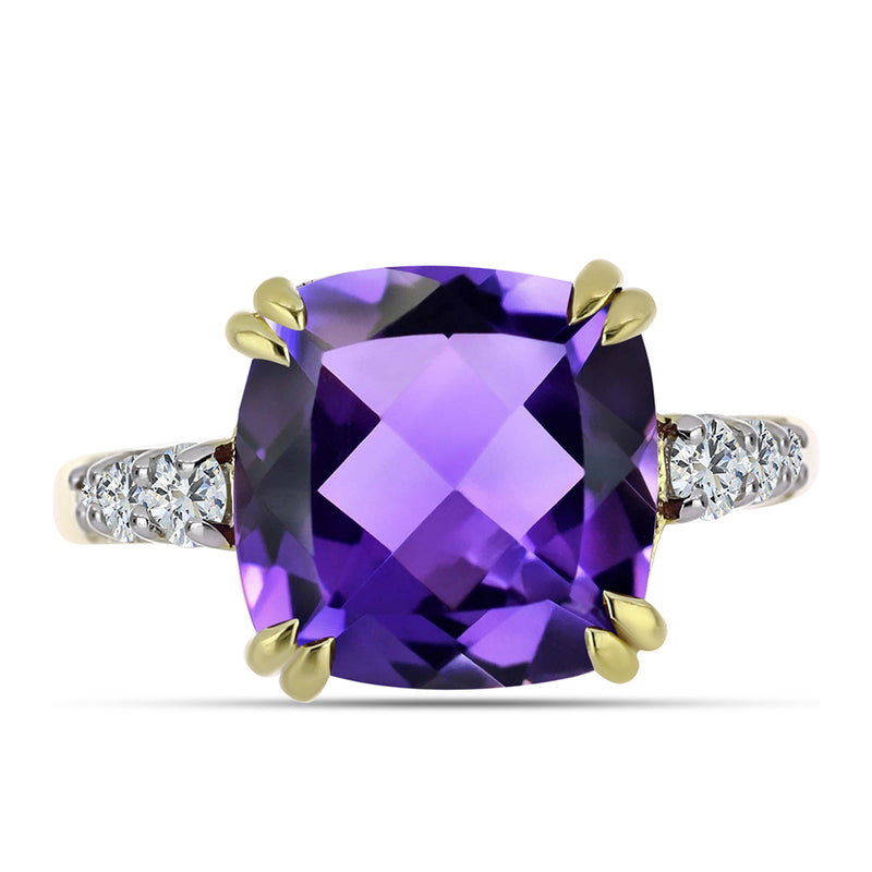Arannyal Bevont Ezüst Gyűrű Marokkói Ametiszttel és Fehér Gyémánttal