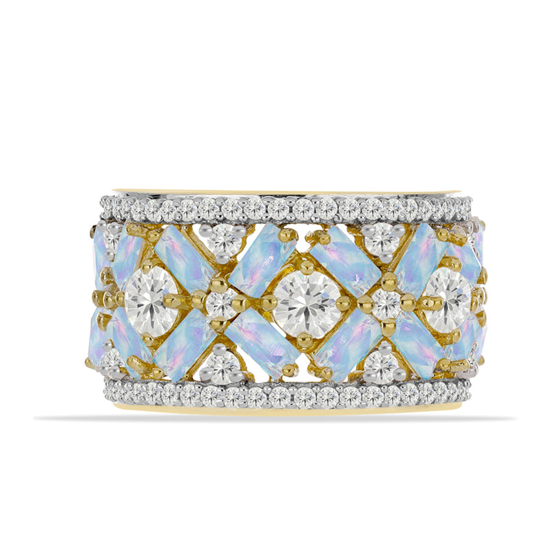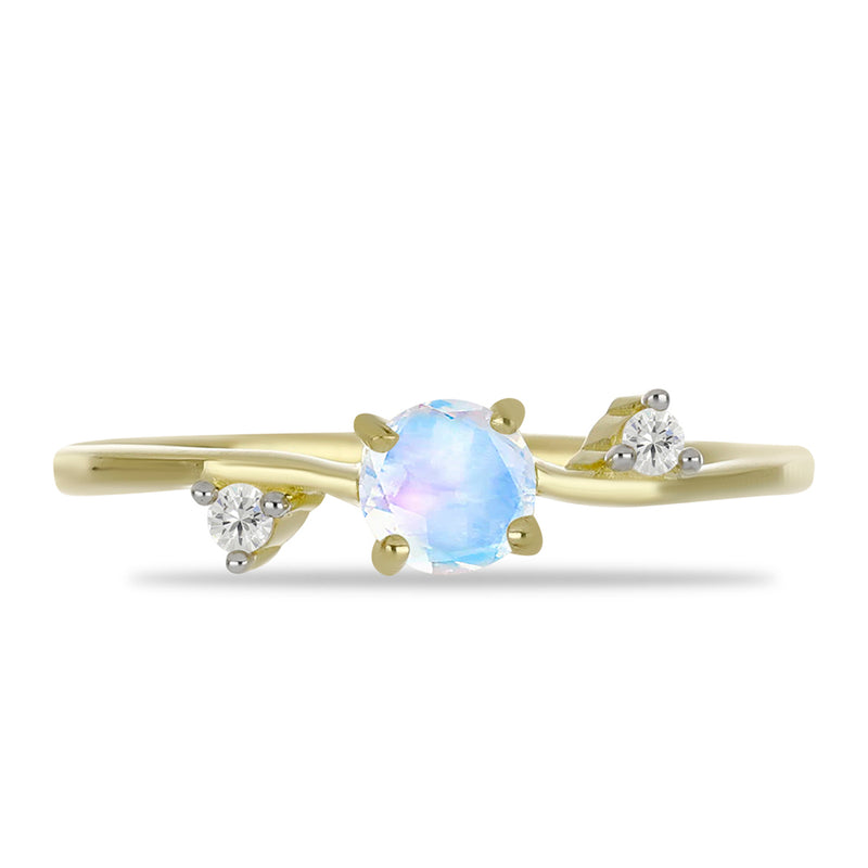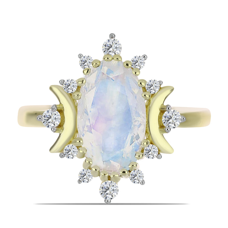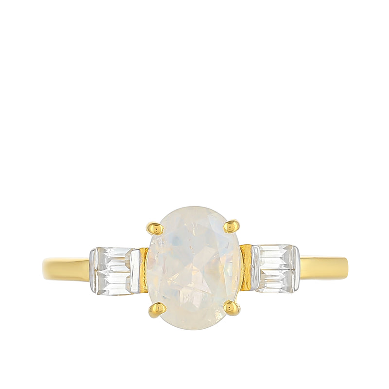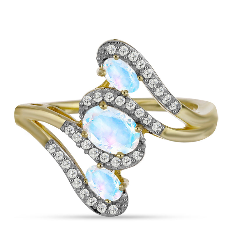 Arannyal Bevont Ezüst Gyűrű Szivárvány Holdkővel és Fehér Topázzal
