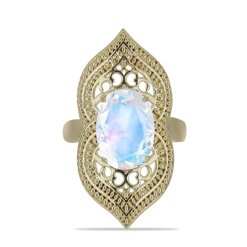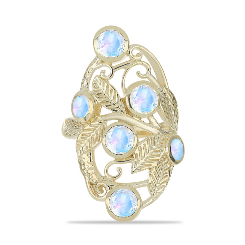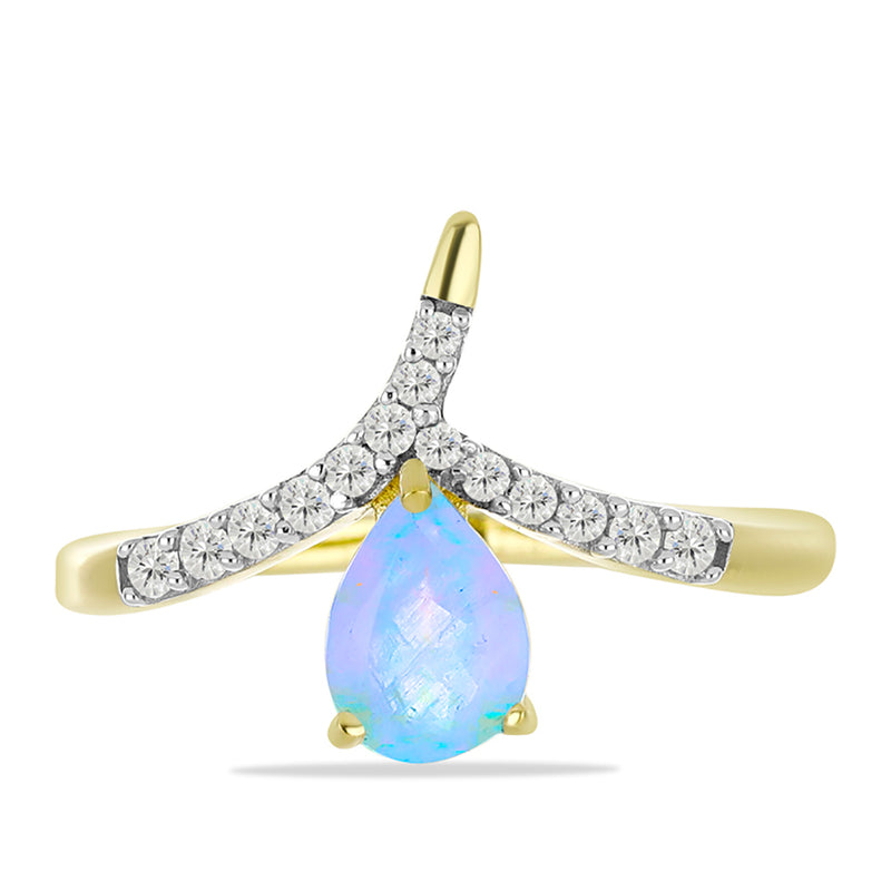 Arannyal Bevont Ezüst Gyűrű Szivárvány Holdkővel