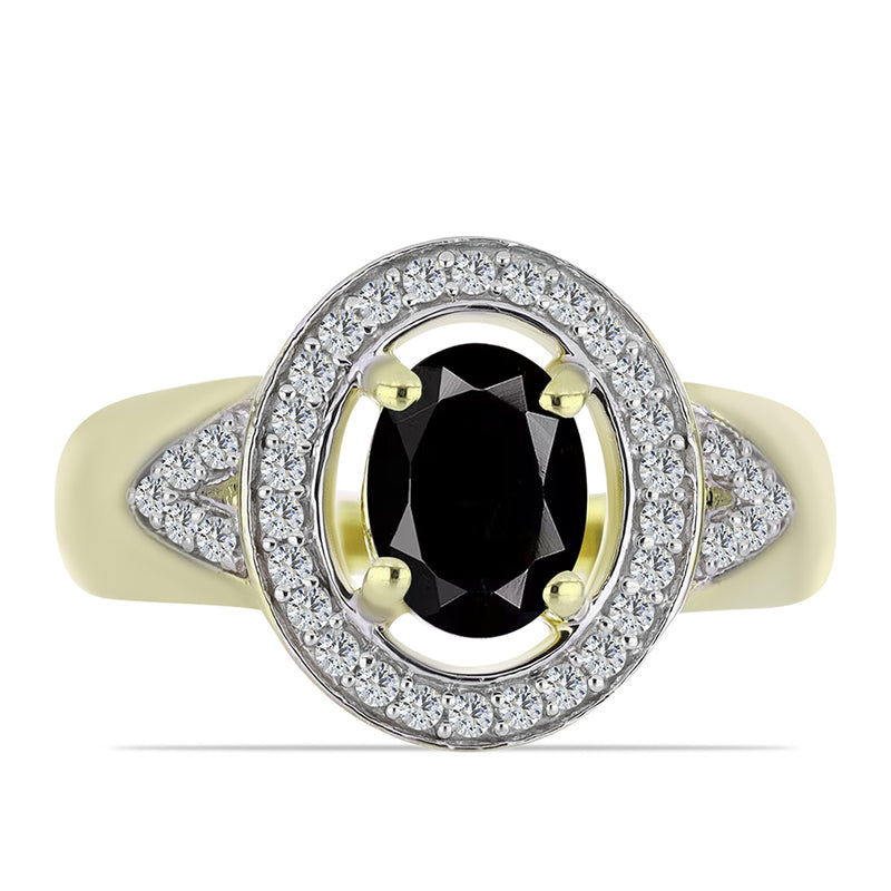 Arannyal Bevont Ezüst Gyűrű Suwari Fekete Onixszal és Fehér Topázzal
