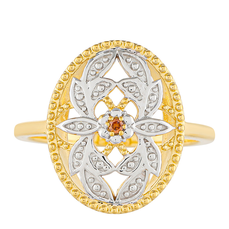 Arannyal Bevont Ezüst Gyűrű Vörös Gyémánttal